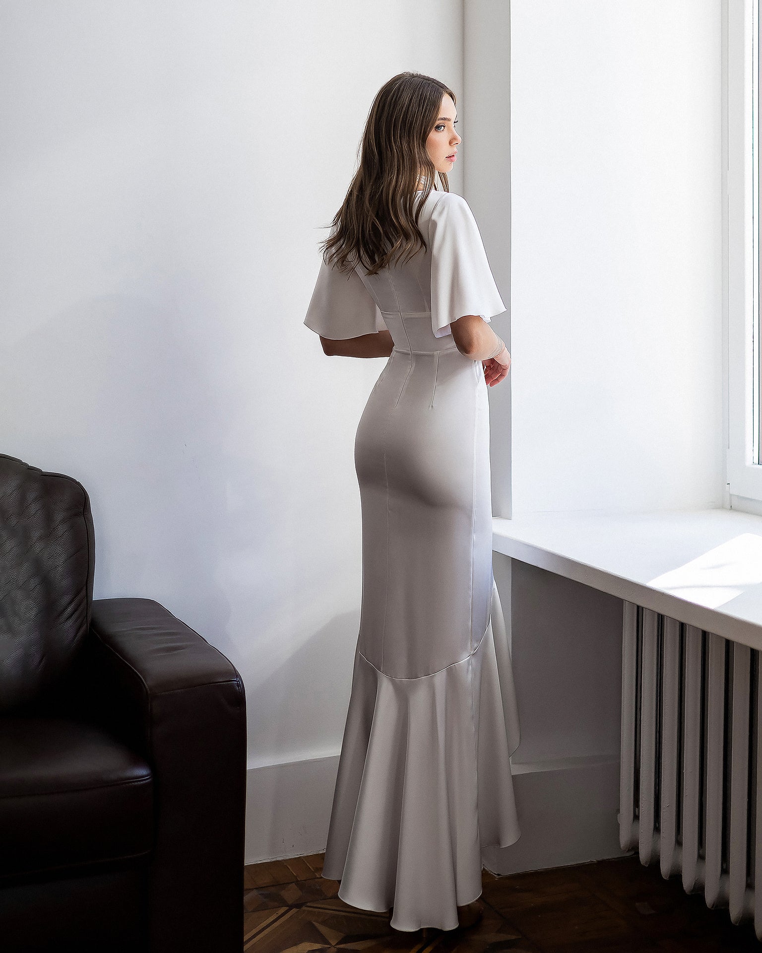 • Floor-length silhouette