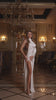 White Satin Draped Neck One-Shoulder Maxi Dress