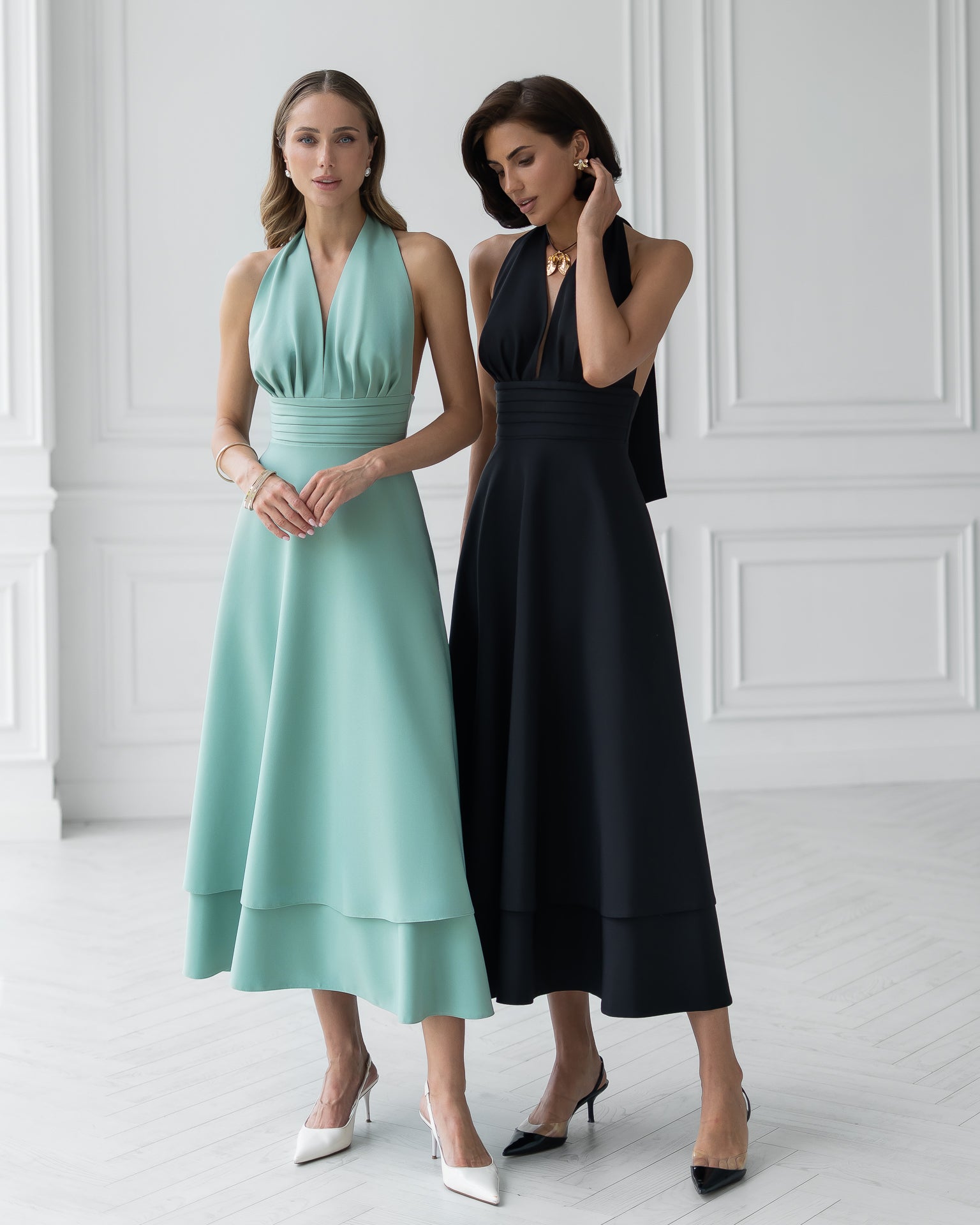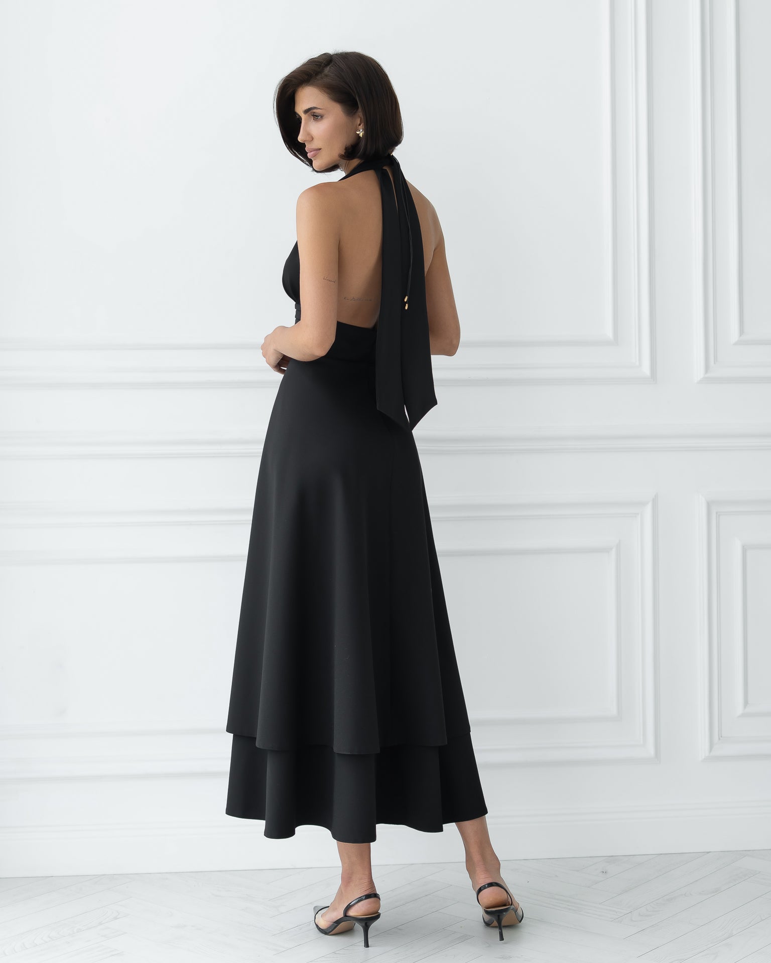 Gloria Black Open-Back Halter-Neck Midi Dress