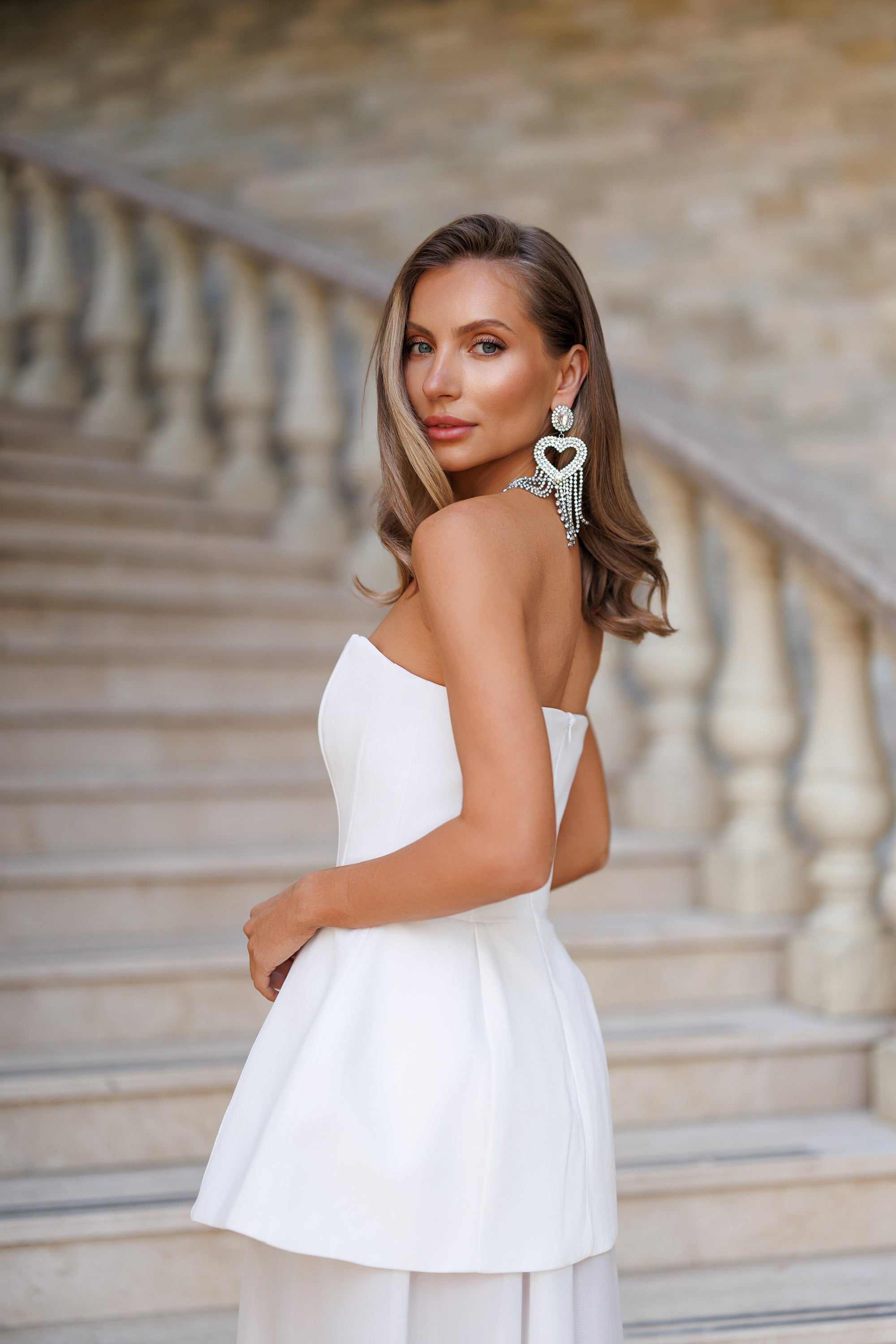 White Strapless Sweetheart Chiffon Skirt Maxi Dress