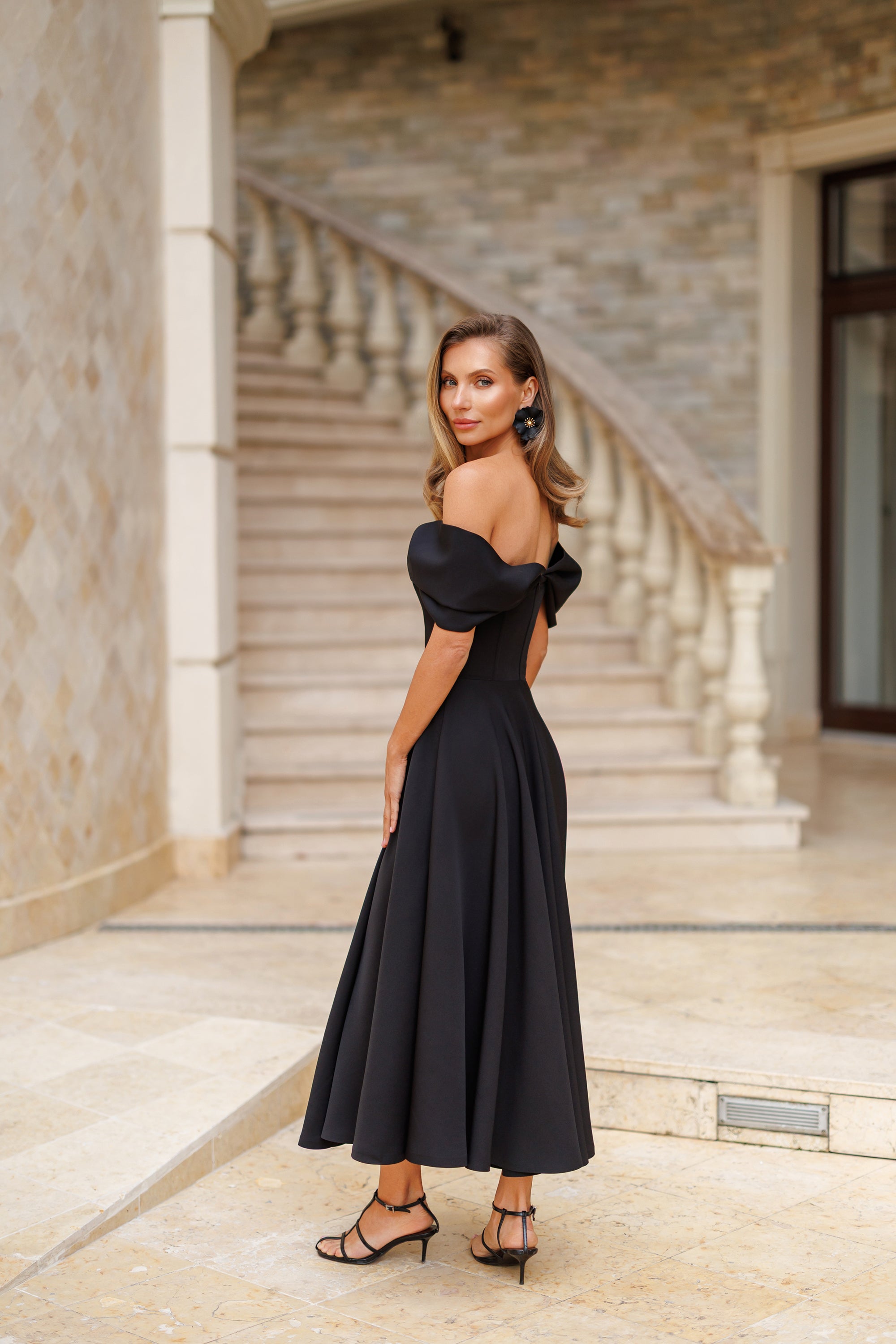 Stella Black Square Neck Backless Midi Dress