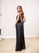 Black Satin Tie-Neck Halter Maxi Dress