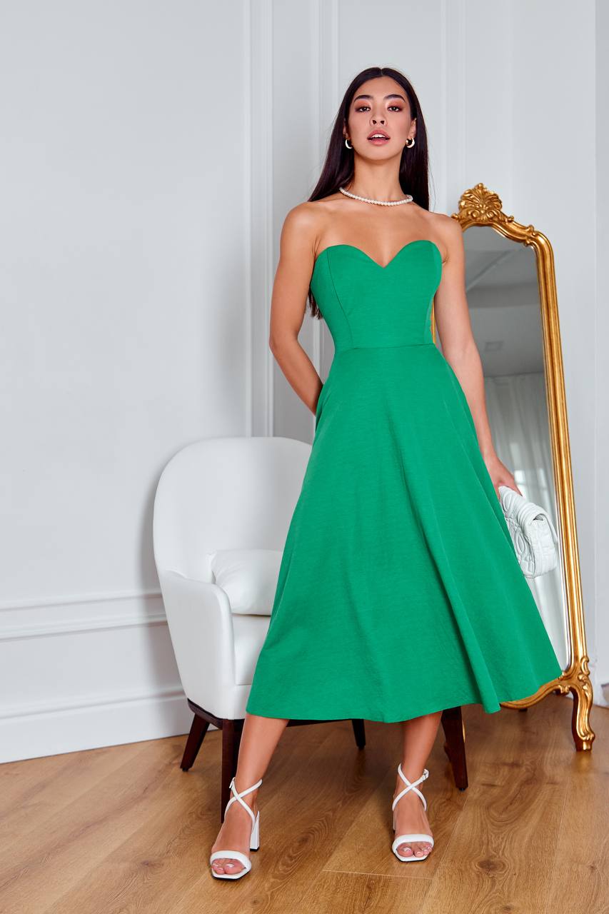 Green Sleeveless Corseted Midi Dress
