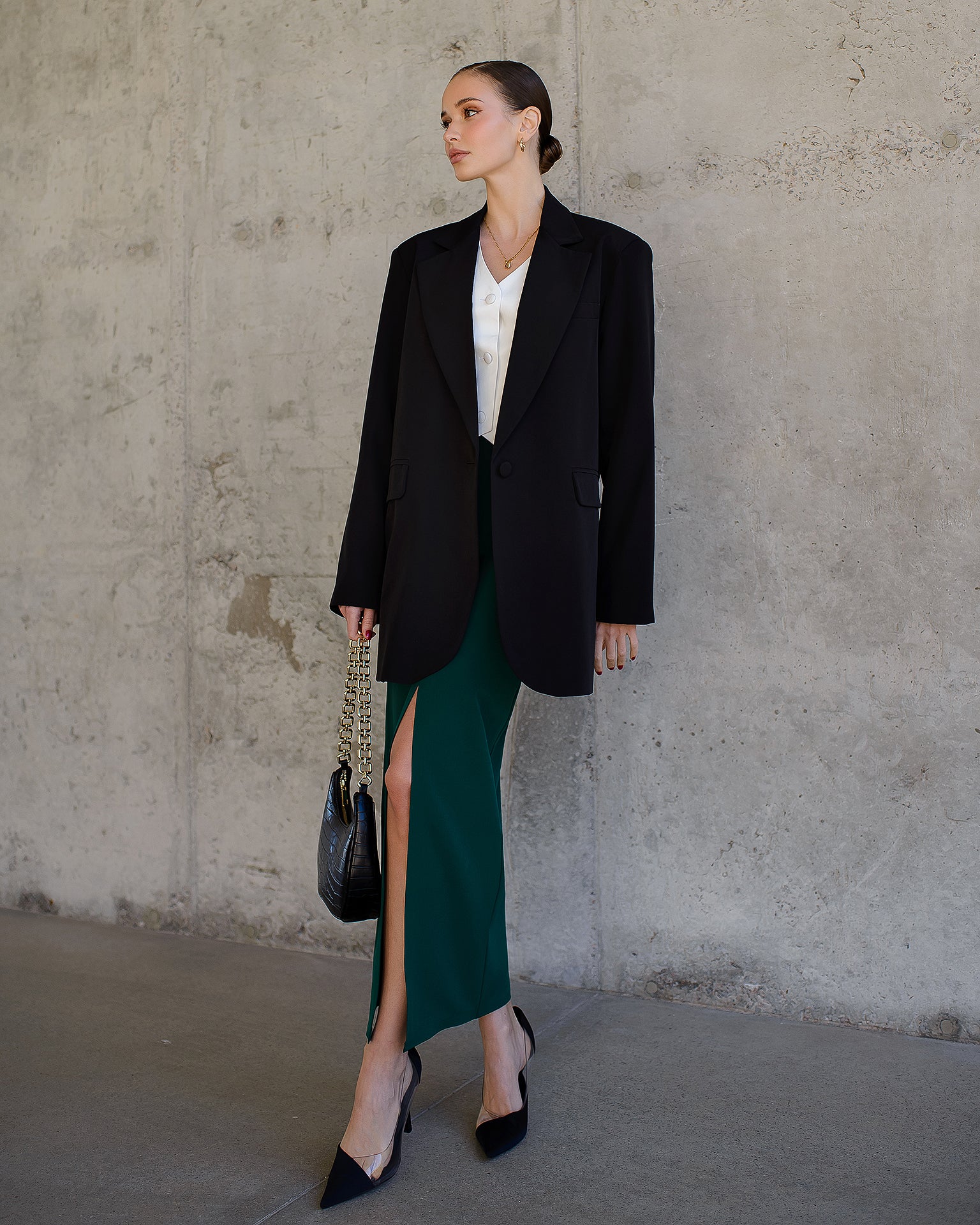 Emerald Front-Slit Midi Skirt