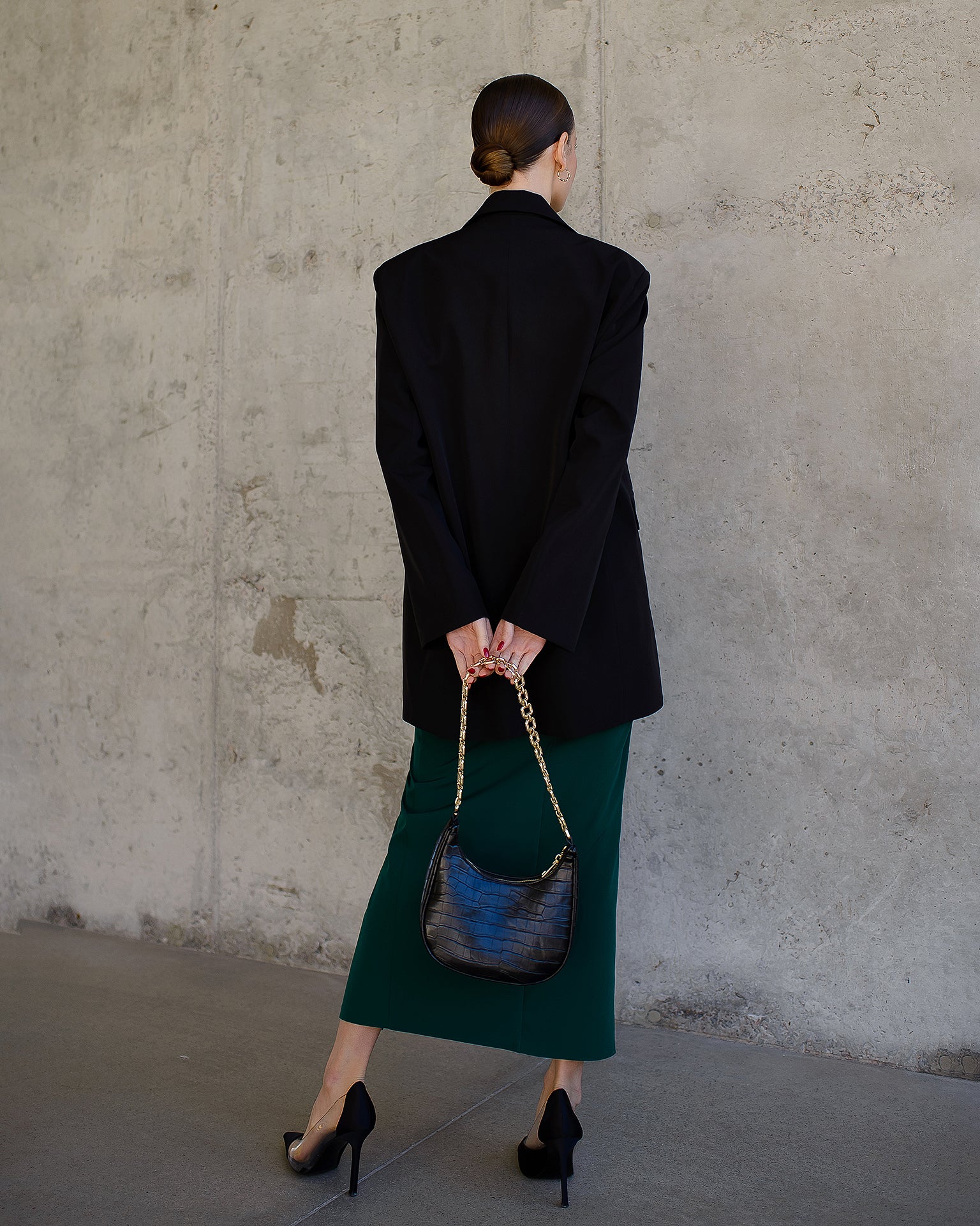 Black Front-Slit Midi Skirt