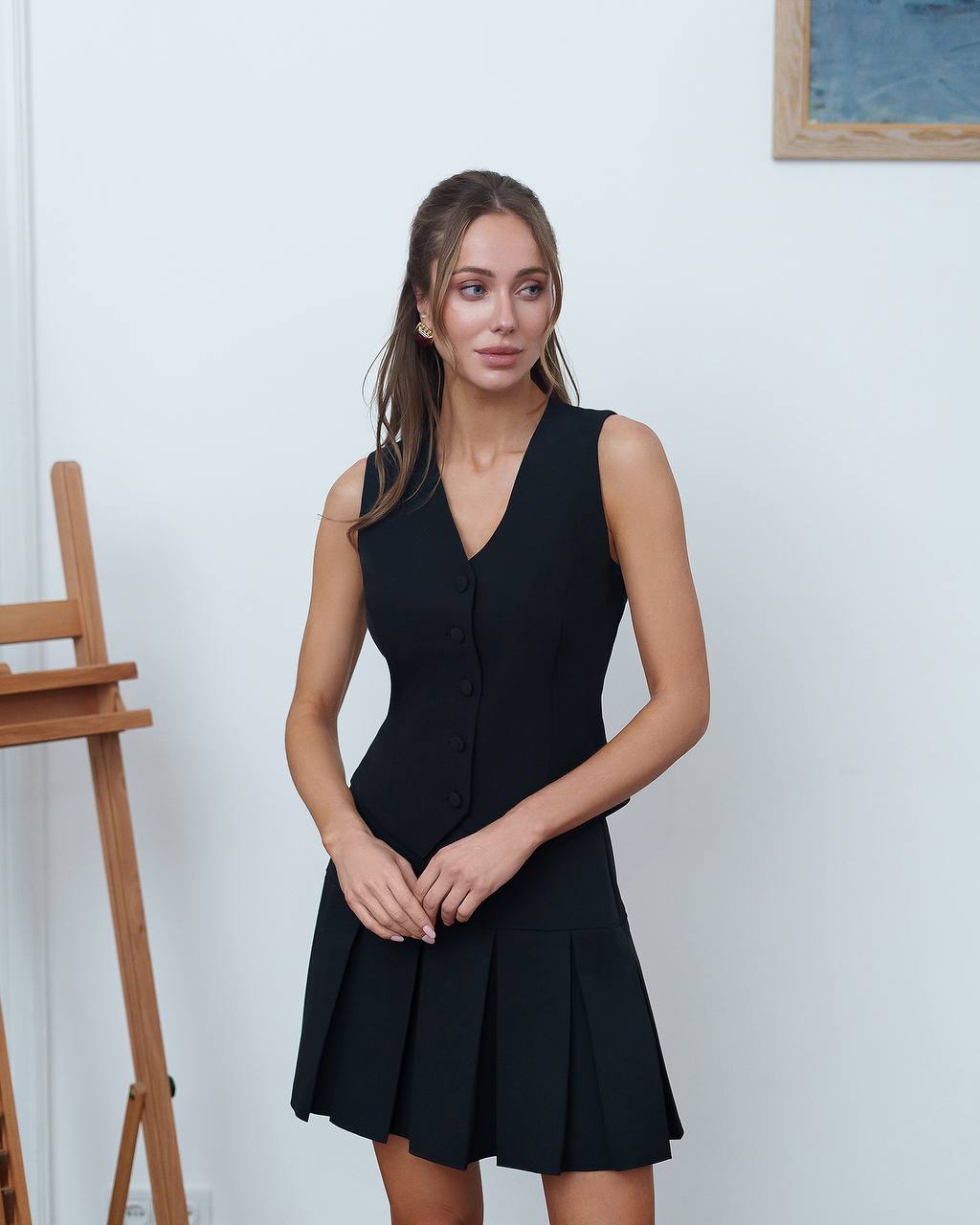 Monica Black Classic Pleated Mini Skirt
