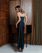 Monica Black Satin Midi Slip Skirt