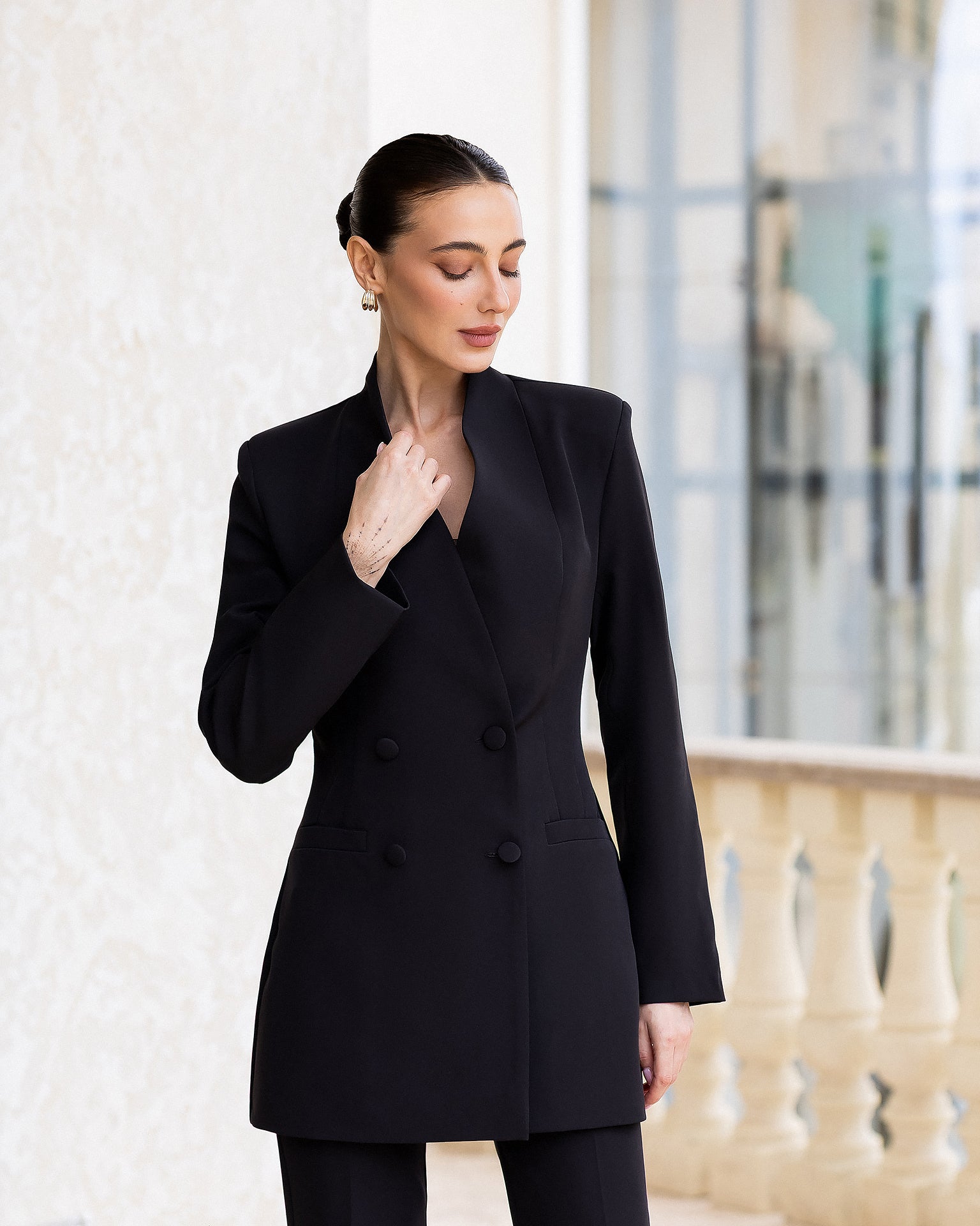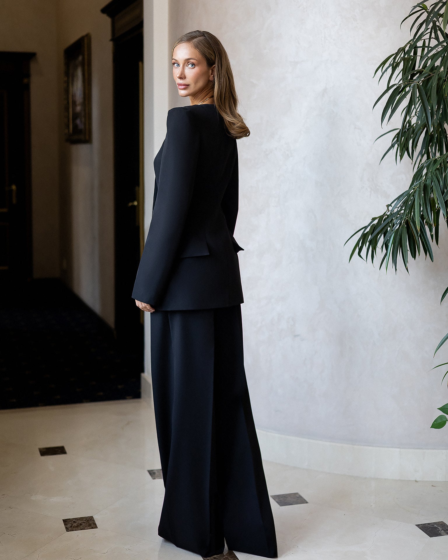 Not every meeting calls for black. The baby blue suit women are choosing instead? Our light blue pantsuit cuts through sea of navy and charcoal in any conference room. The double-breasted closure adds structure while the belt keeps things feminine. For traditionalists, the Black Belted Double Breasted Suit 2-Piece remains a powerhouse option.