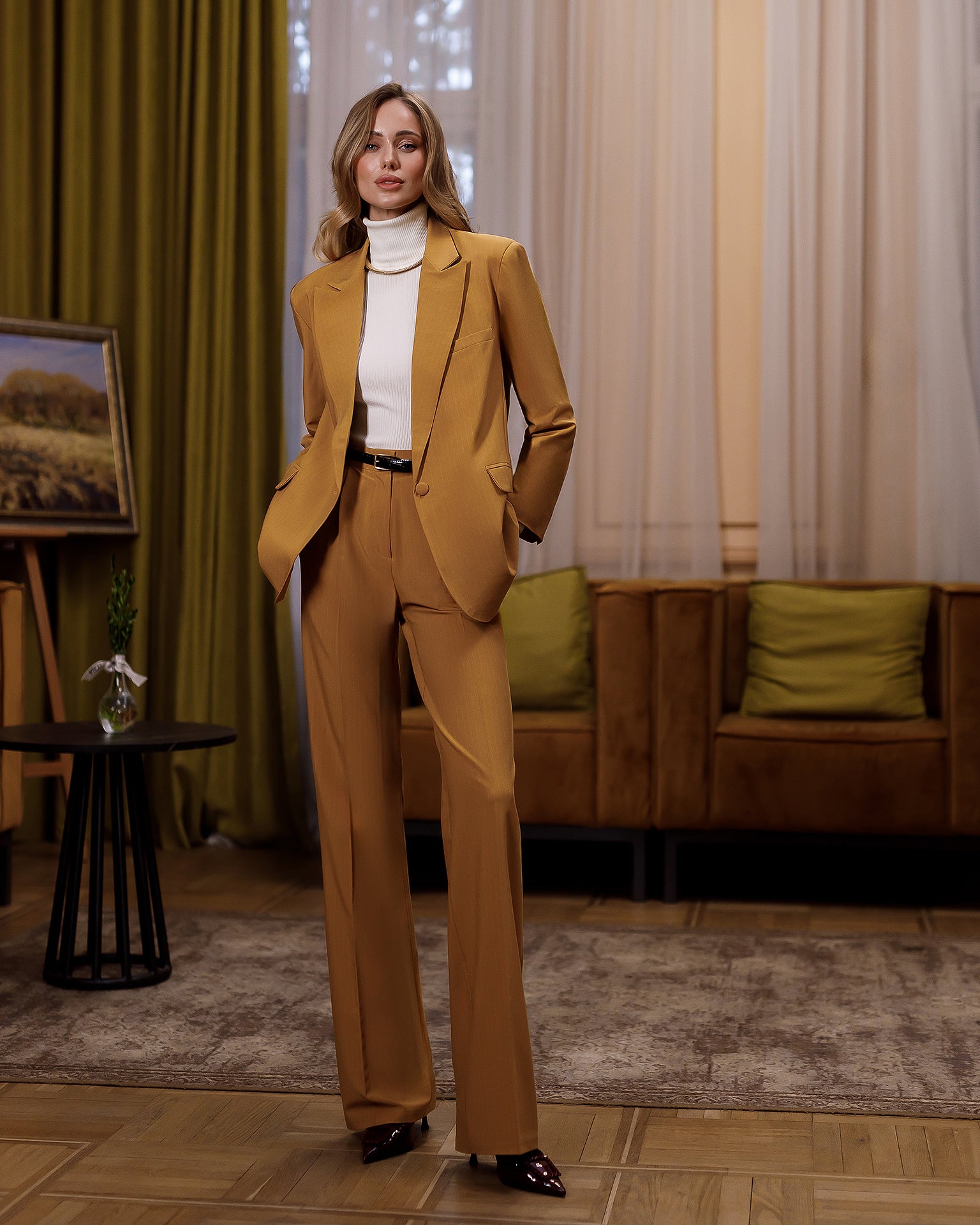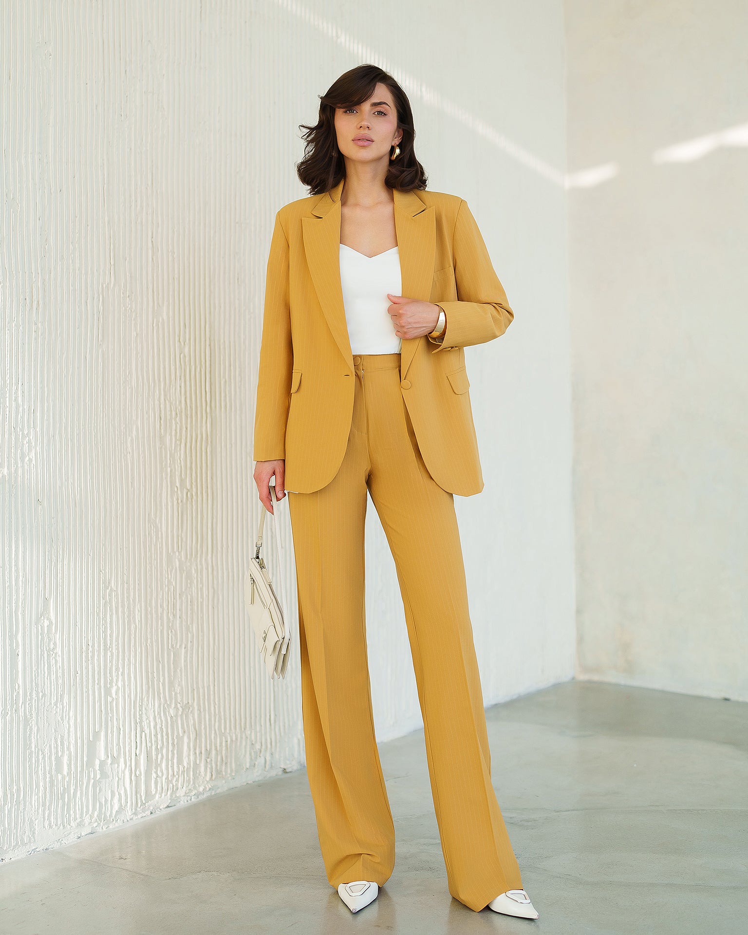 Gloria Mustard Striped Single-Breasted Suit 2-Piece
