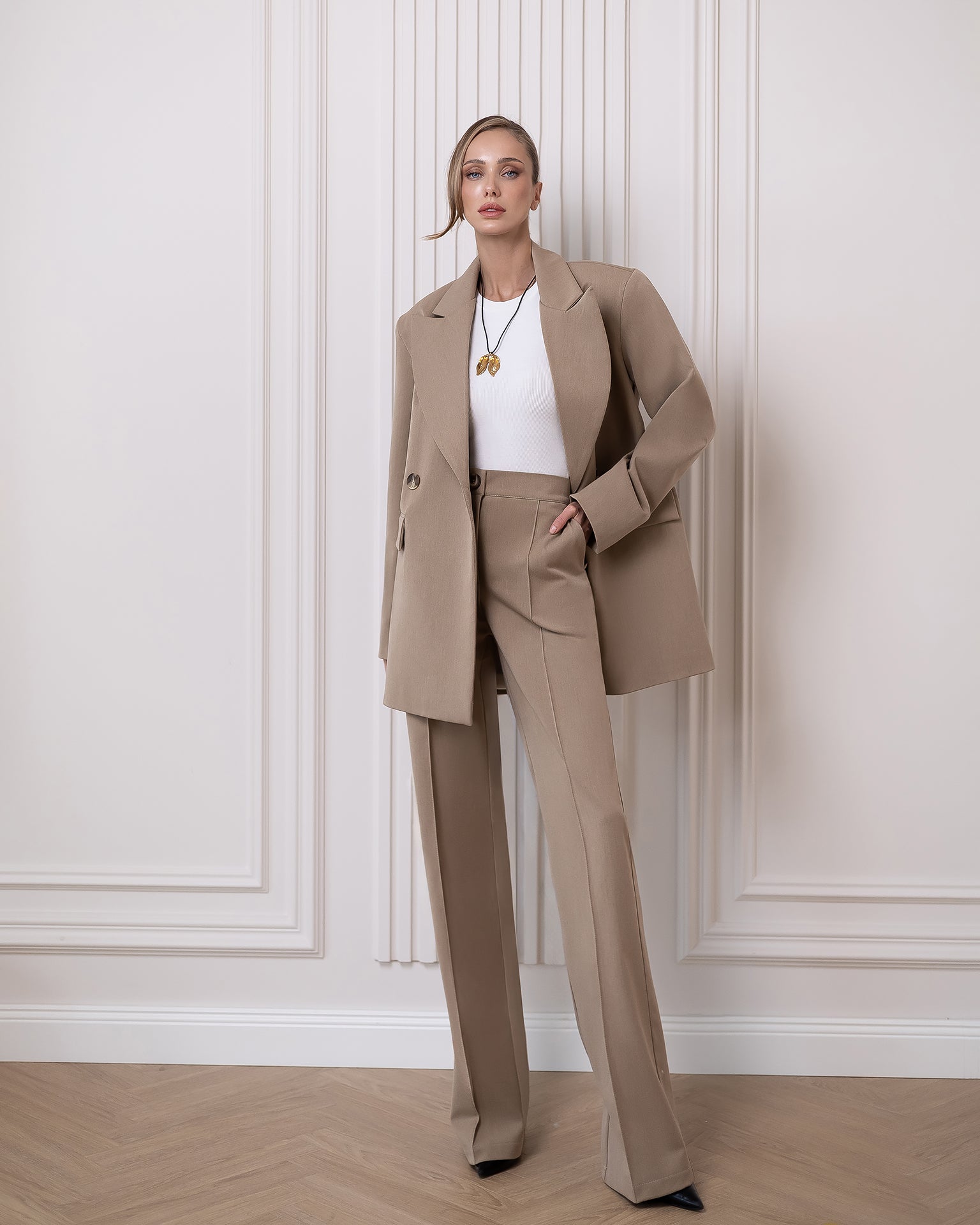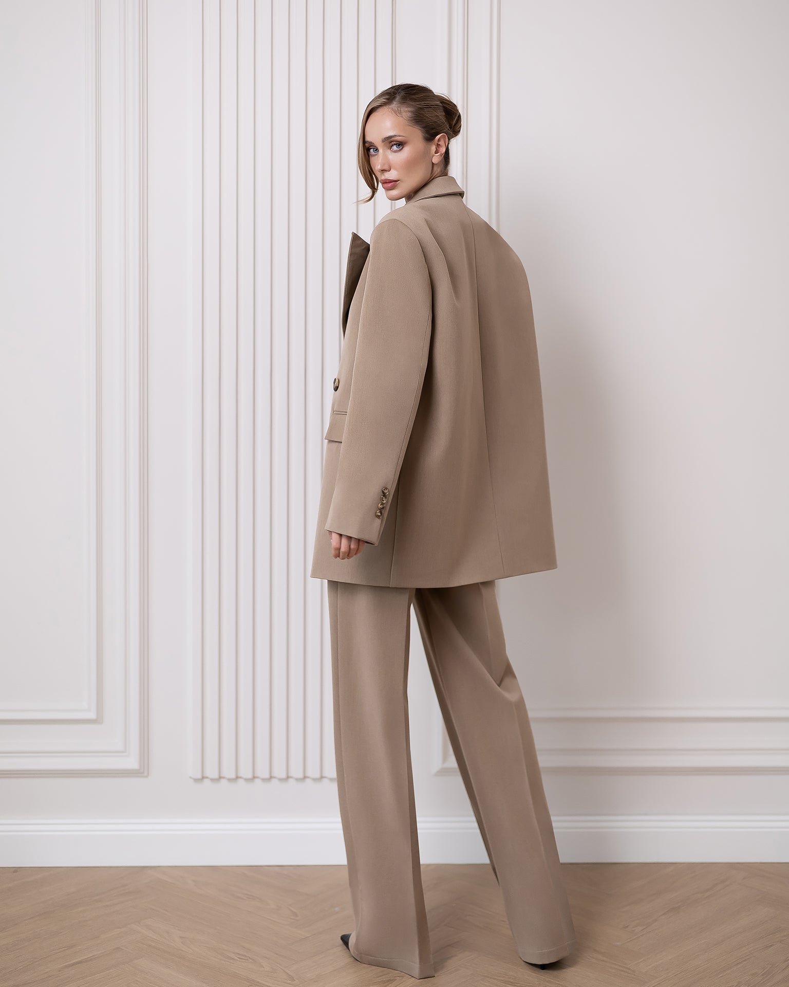 Liora Beige Oversized Double-Breasted Suit 2-Piece