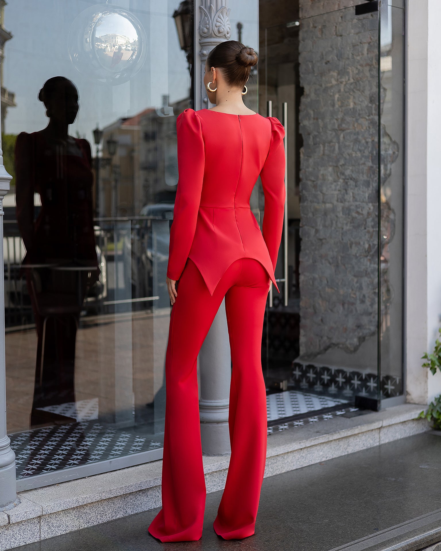 Red Square Neck Puff Sleeve Blouse