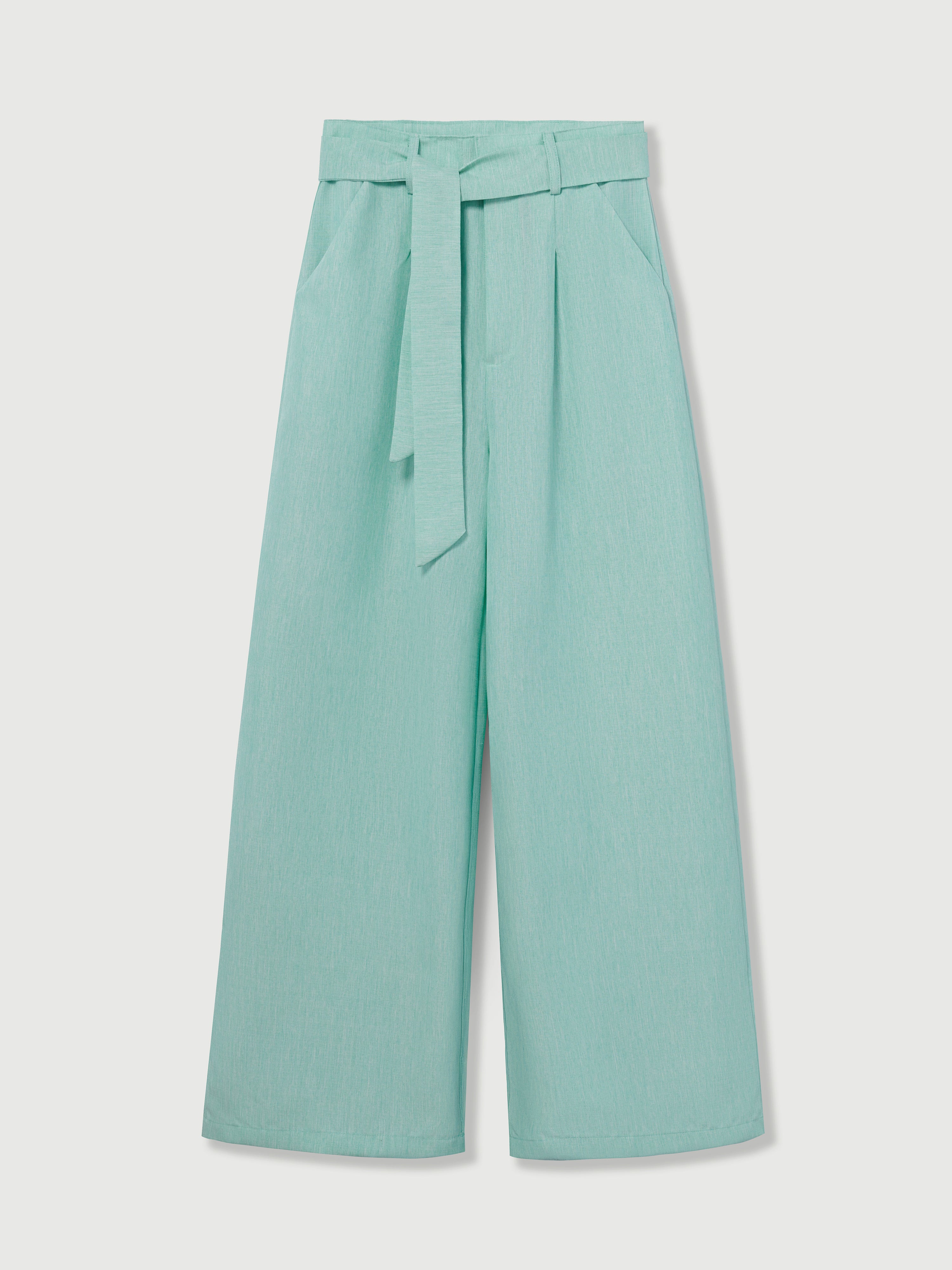 Elagia Tiffany-Blue Linen Belted Palazzo Pants
