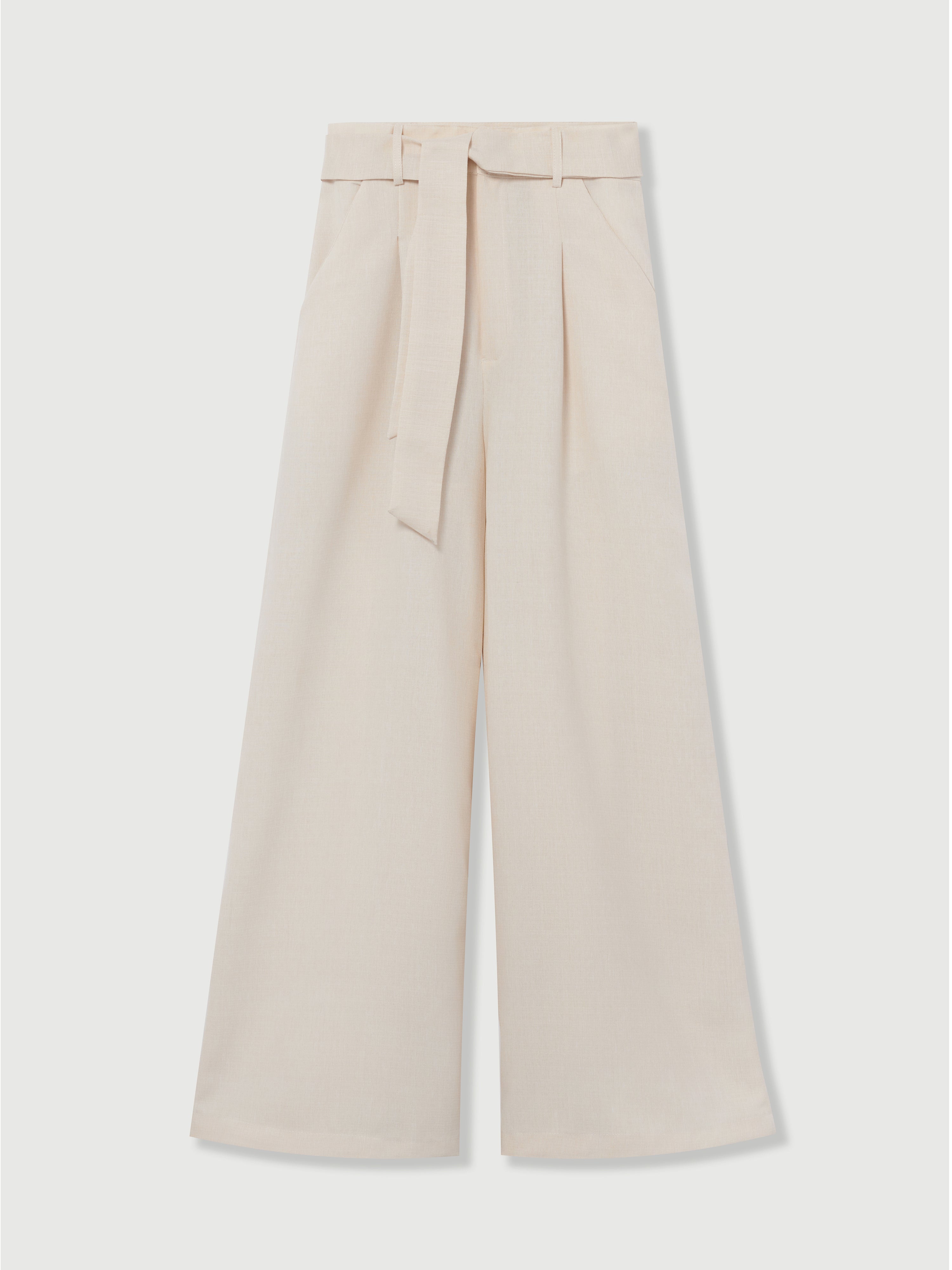 Elagia Beige Linen Belted Palazzo Pants