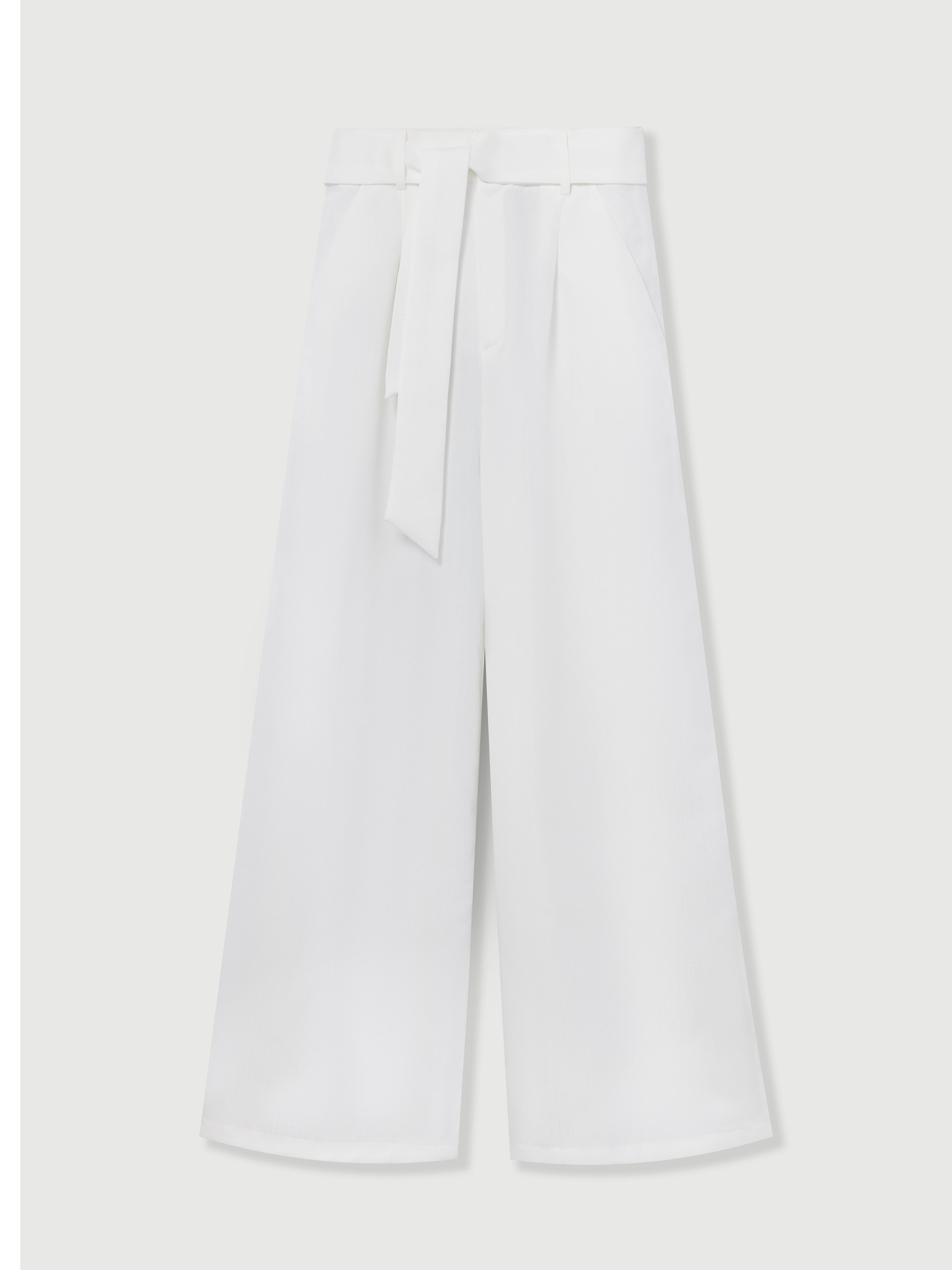 Bella White Draped Waist Wide-Leg Pants