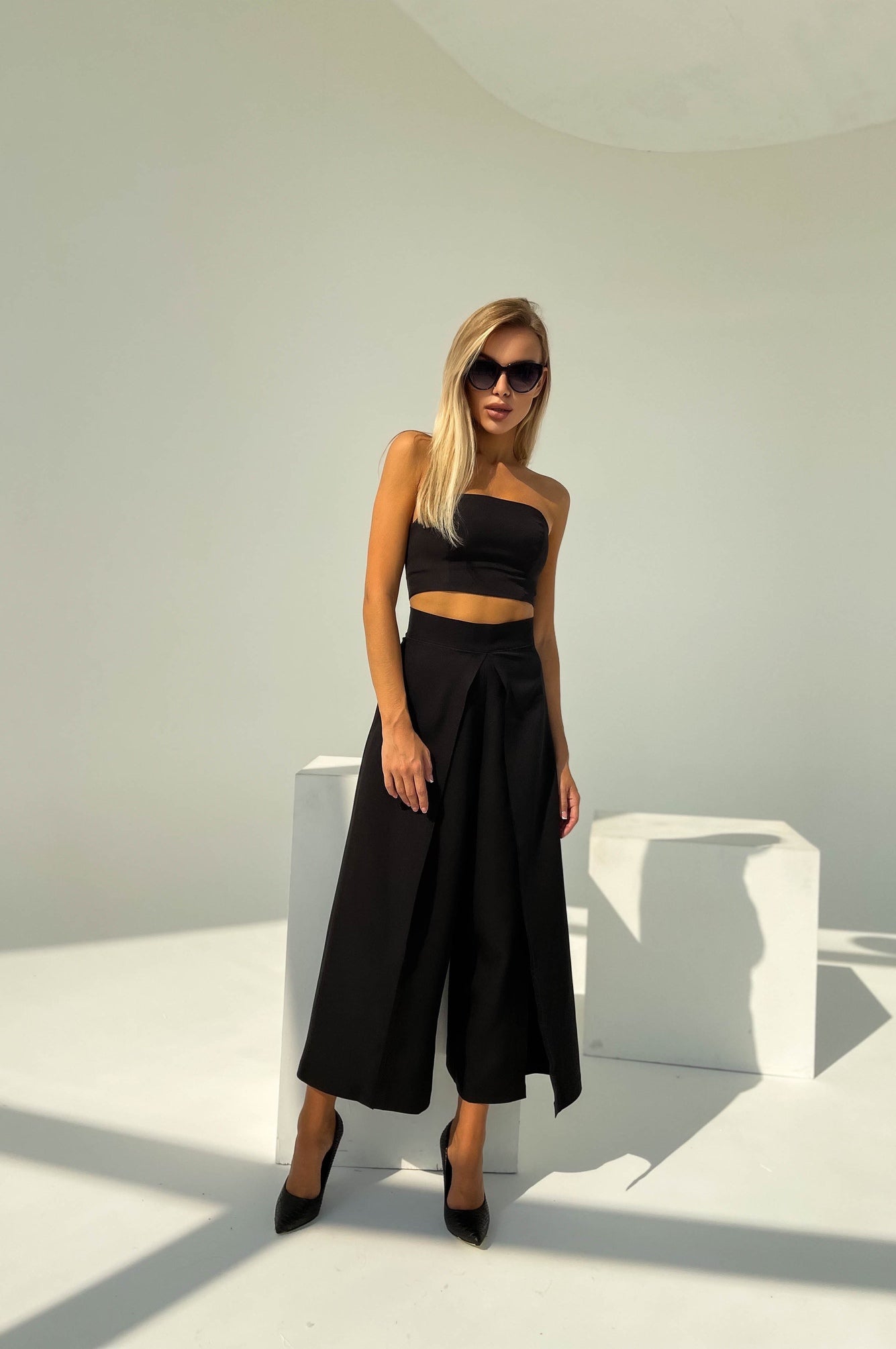 Black High Waist Slit Cuff Сulottes