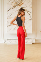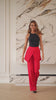 Kaia Red Asymmetric Overlay Straight-Leg Pants