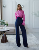 Monica Navy High-Waisted Pleated Palazzo Pants