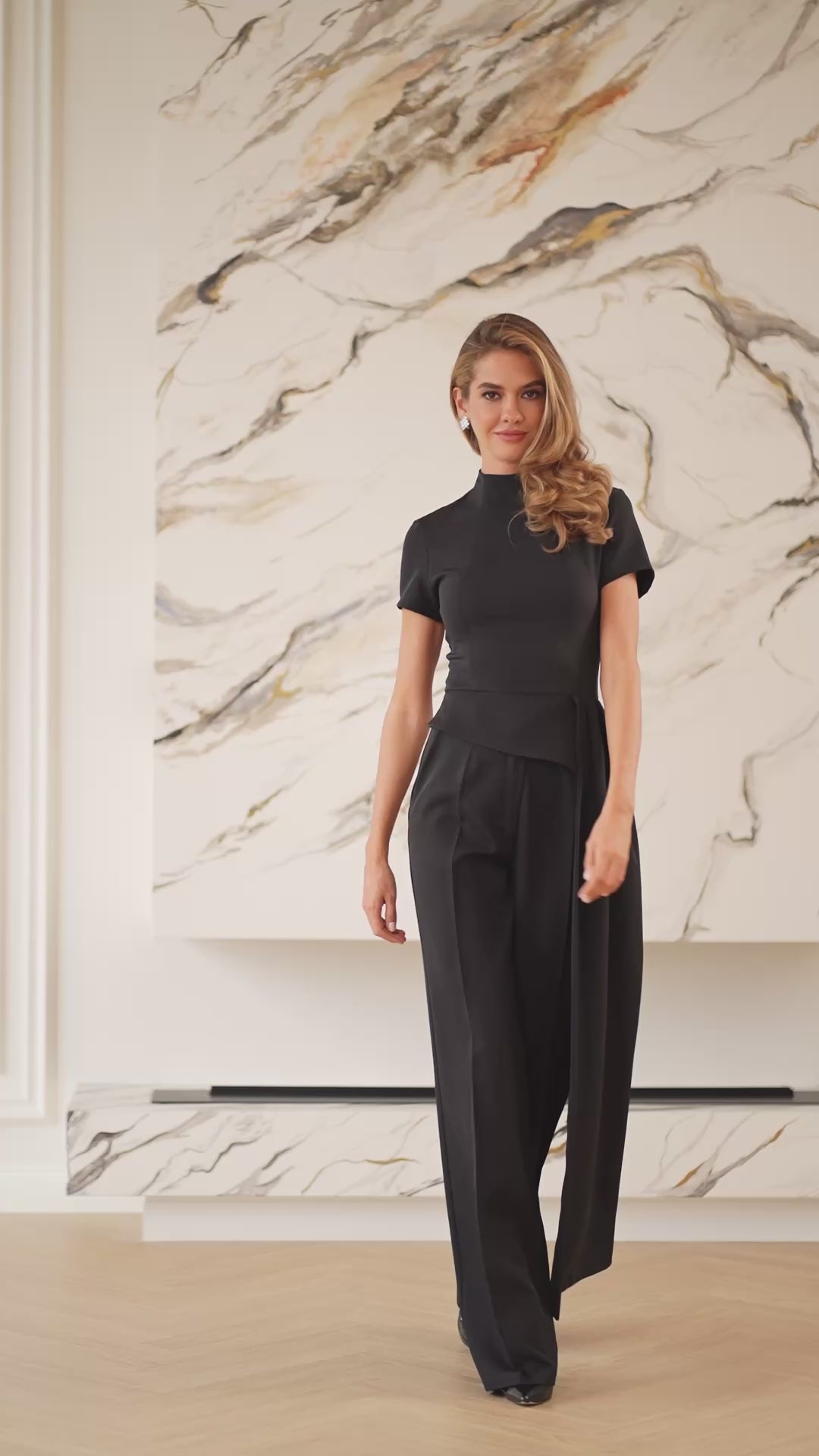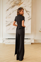 Lea Black Asymmetric Draped Top & Pants Set 2-Piece