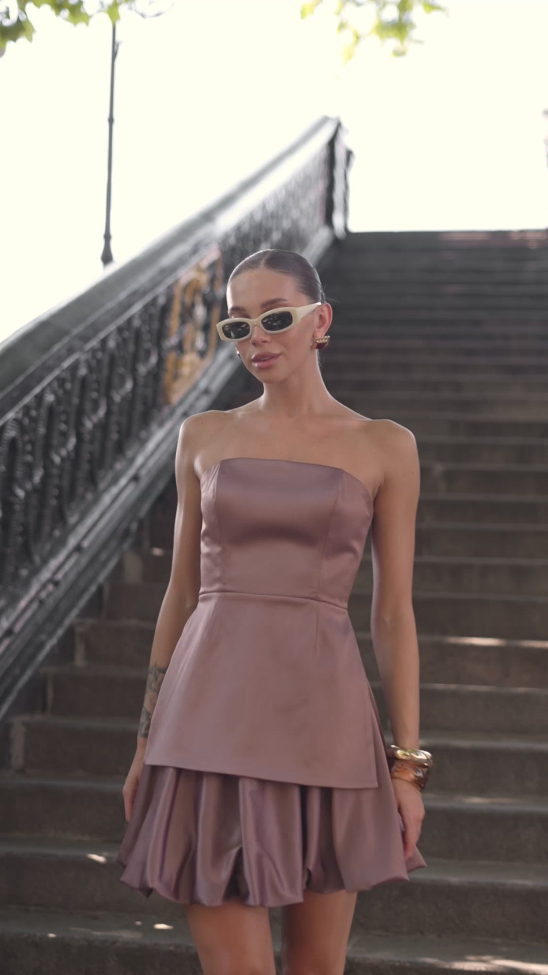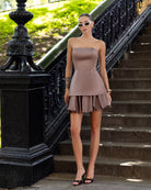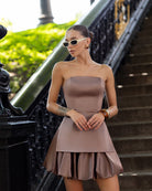 Mocco Satin Strapless Peplum Top & Bubble-Hem Mini Skirt