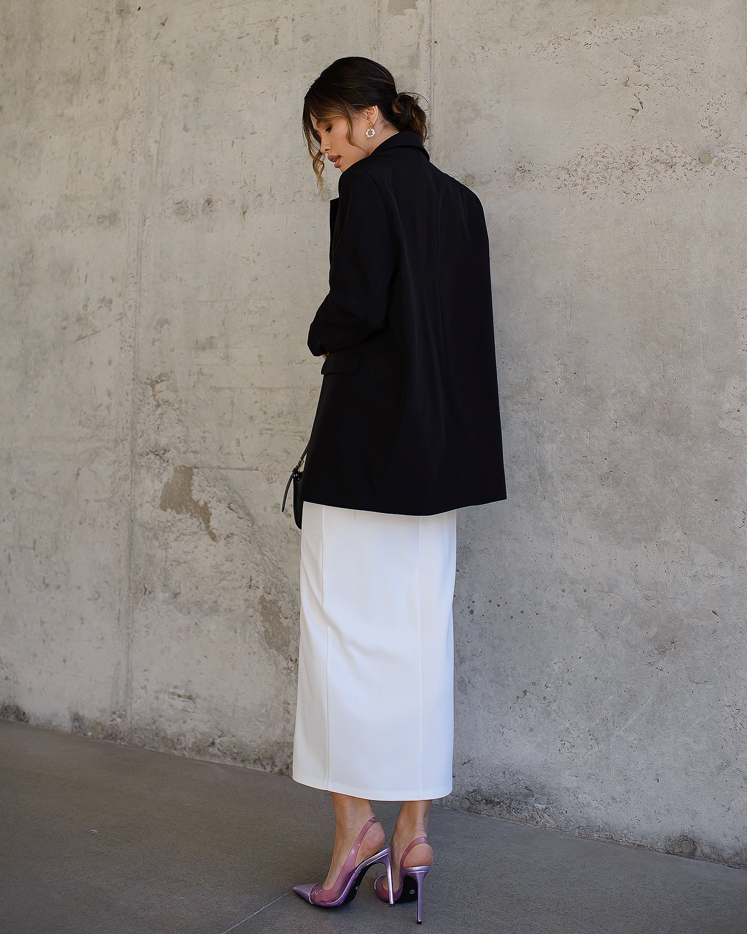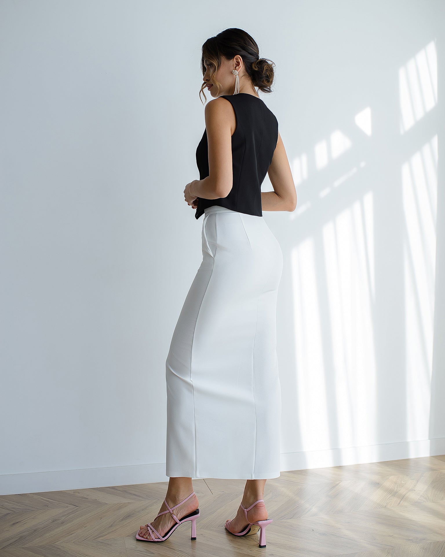 White Front-Slit Midi Skirt