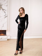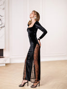 Estelle Black Velvet Square-Neck Lace-Panel Maxi Dress
