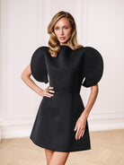 Lorena Black Sculptural-Sleeve Cut-Out Mini Dress