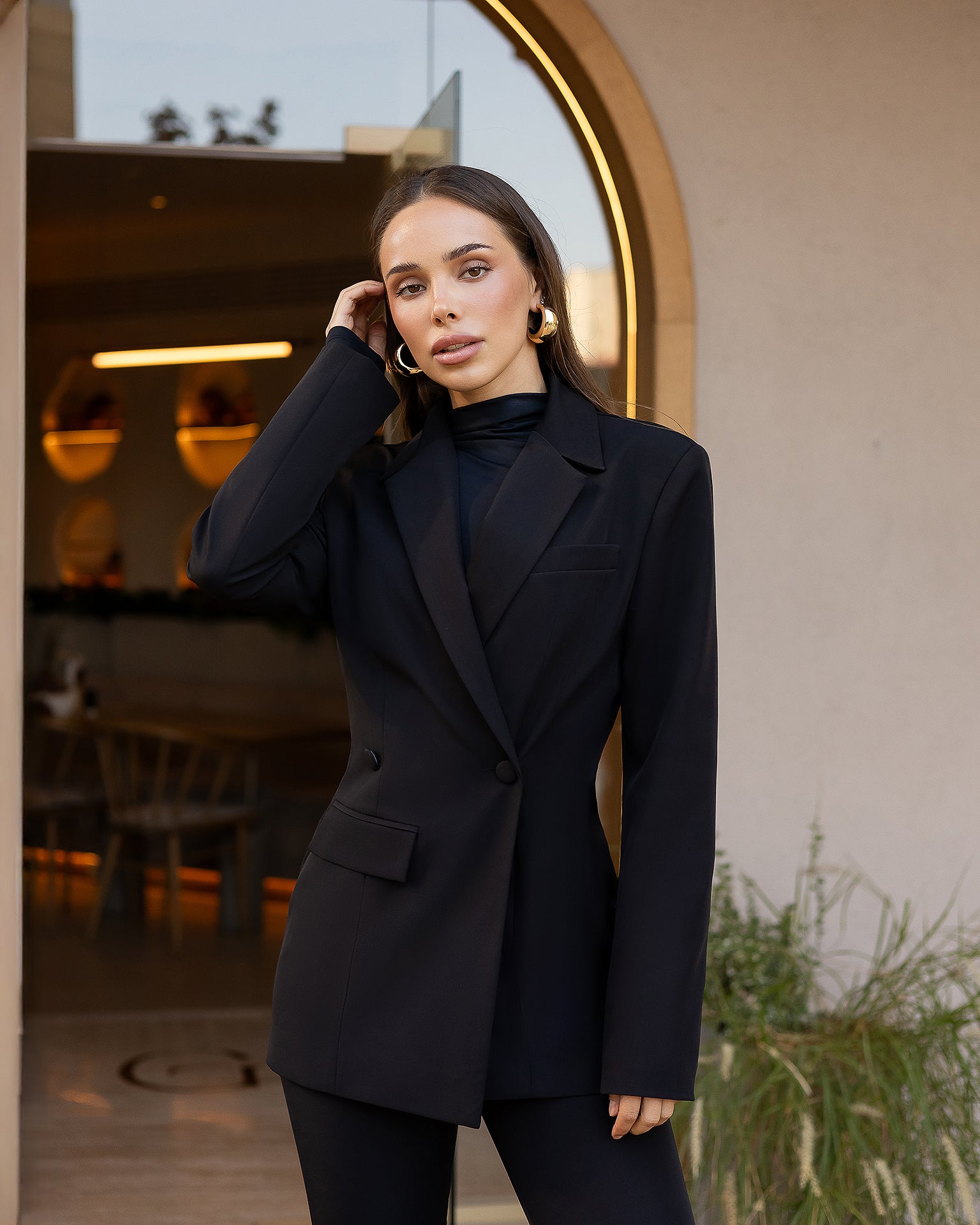• Long structured sleeves
