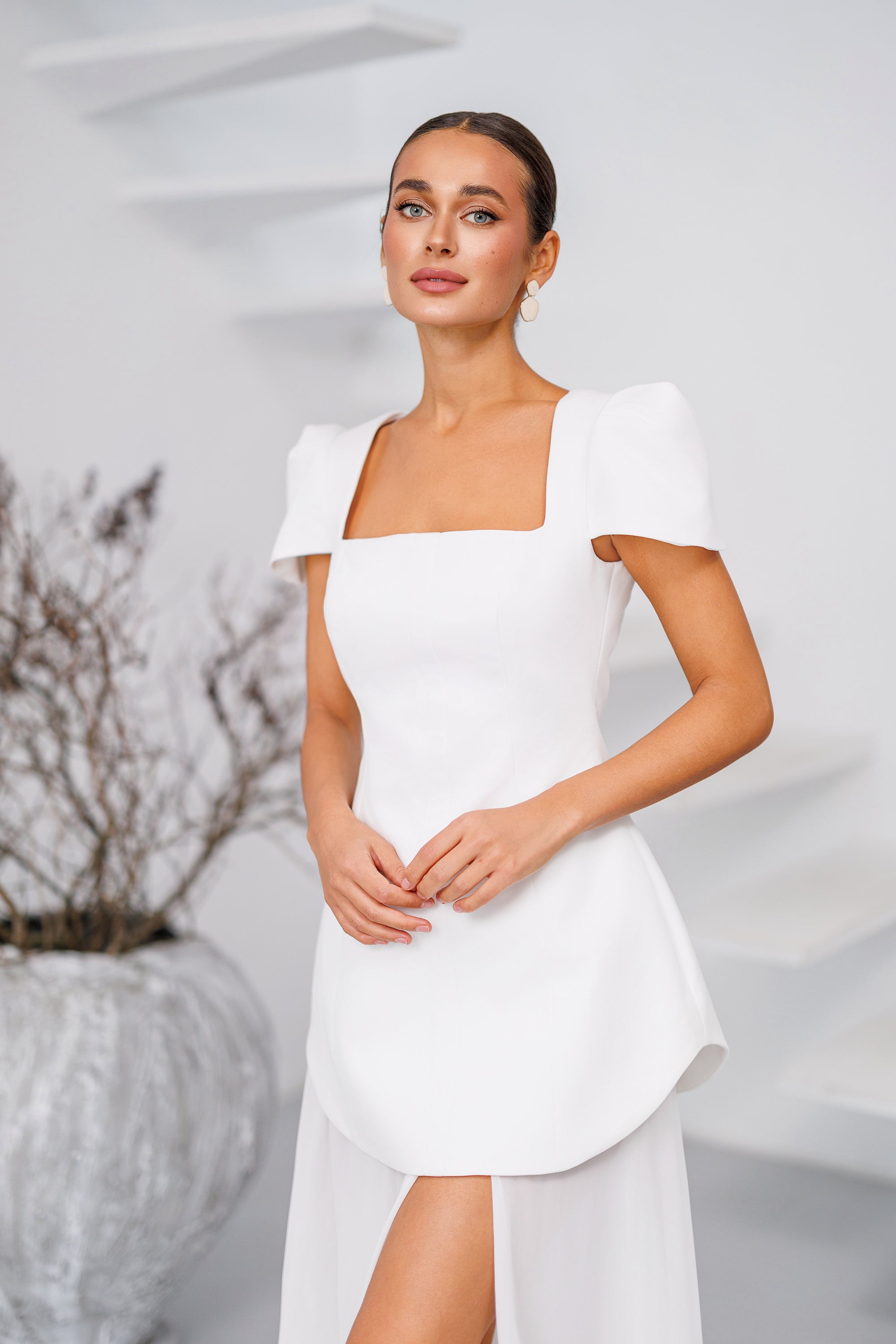 Elara White Square-Neck Puff-Sleeve Chiffon Maxi Dress