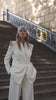 Julia White Double-Breasted Cutout-Shoulder Blazer