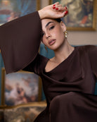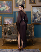 Celeste Brown Satin Asymmetric One-Shoulder Midi Dress