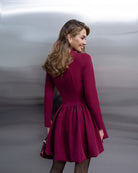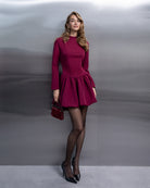 Elara Bordeaux High-Neck Long-Sleeve Mini Dress