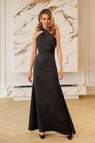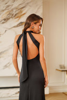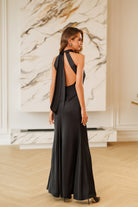 Kaia Black Satin Halter-Neck Open-Back Maxi Dress