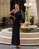 Léa Black One-Shoulder Puff-Sleeve Maxi Dress