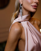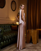 Monica Dusty Pink Halter Neck Satin Midi Dress