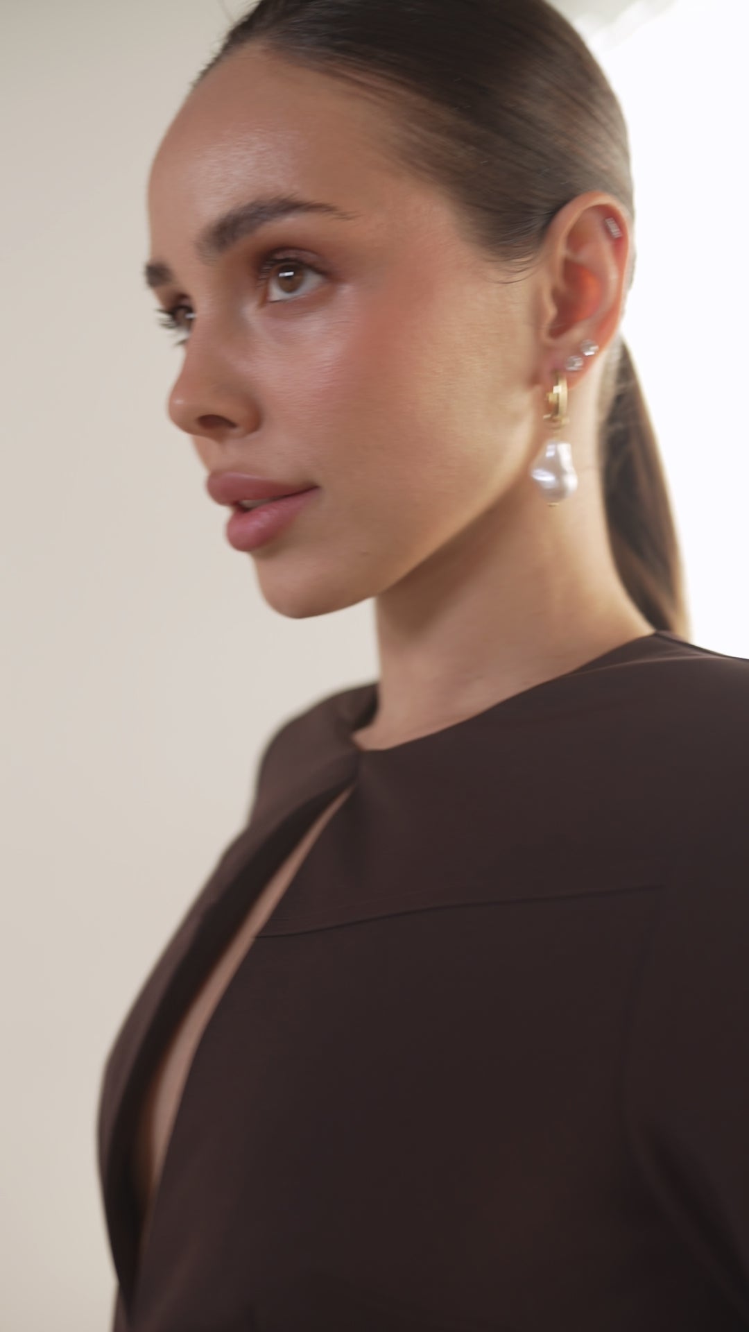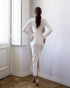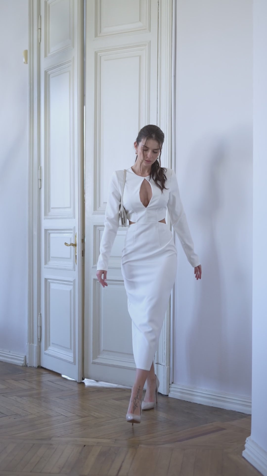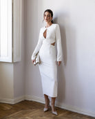 Vela White Keyhole Cut-Out Long-Sleeve Midi Dress