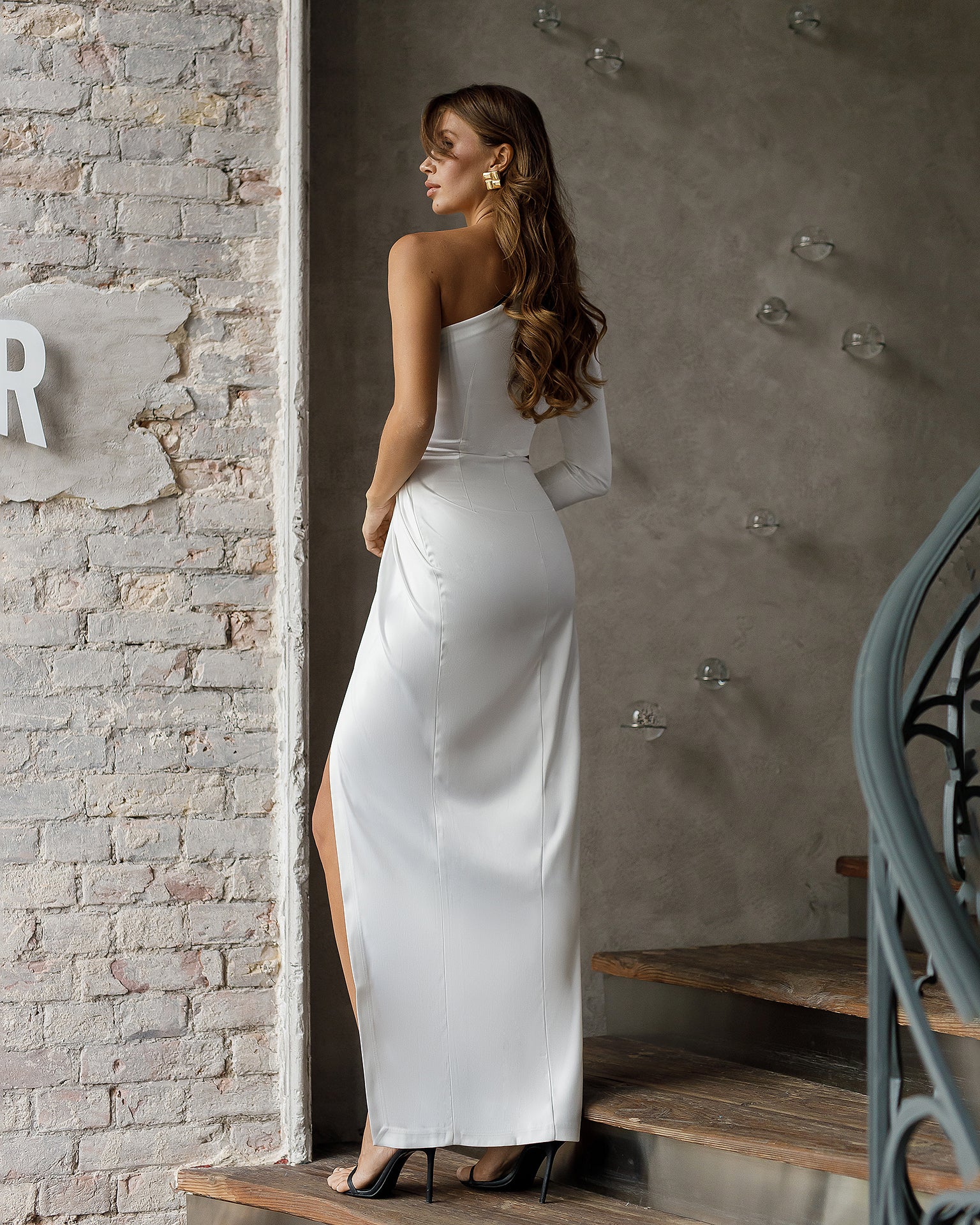 Stella White Satin One-Shoulder Cut-Out Maxi Dress