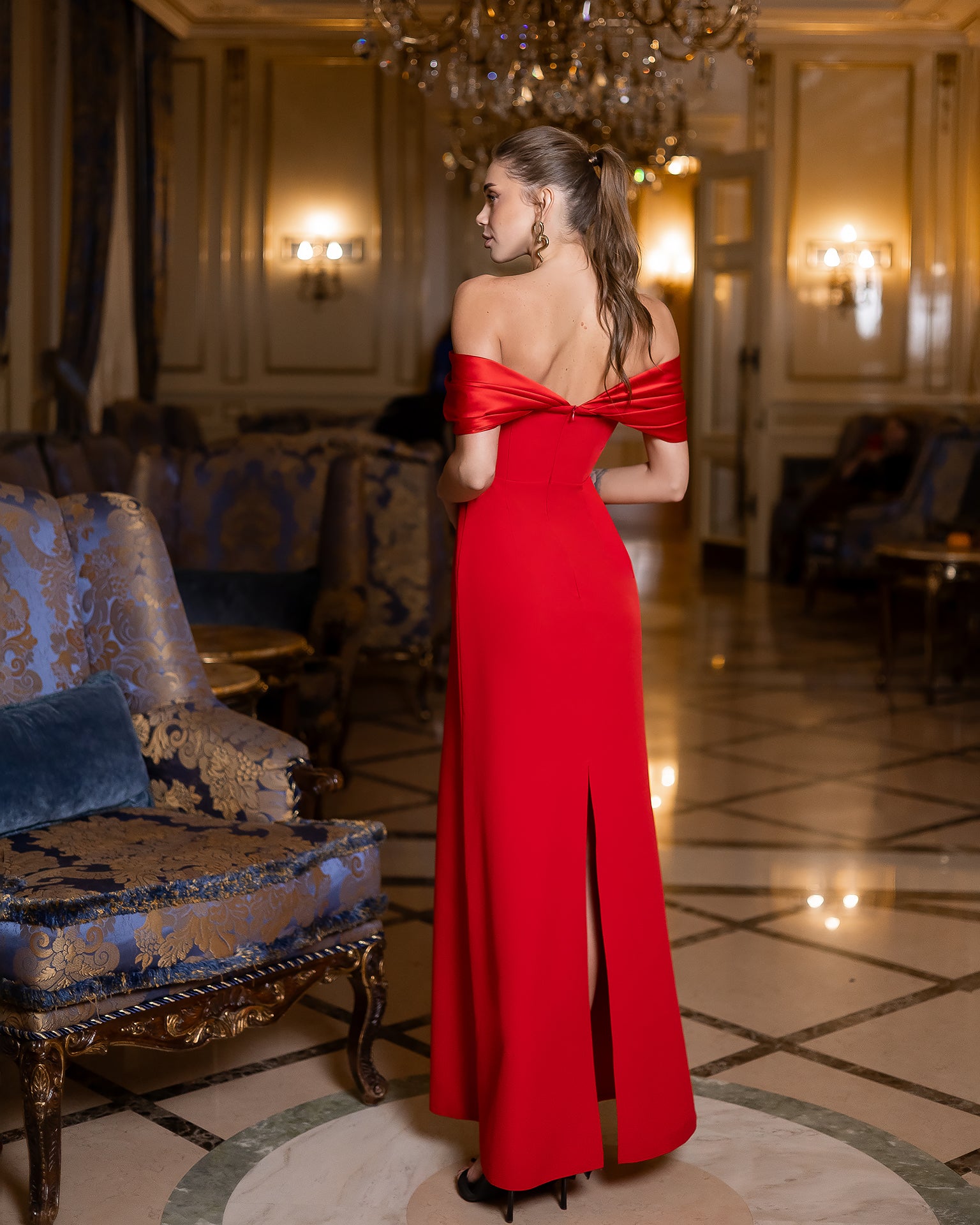Léa Red Off-the-Shoulder Draped Maxi Dress