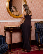 Bianca Brown Asymmetric Ruffled Slip Midi Dress