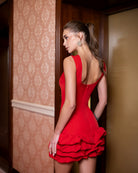 Inès Red Sleeveless Ruffled-Hem Mini Dress