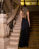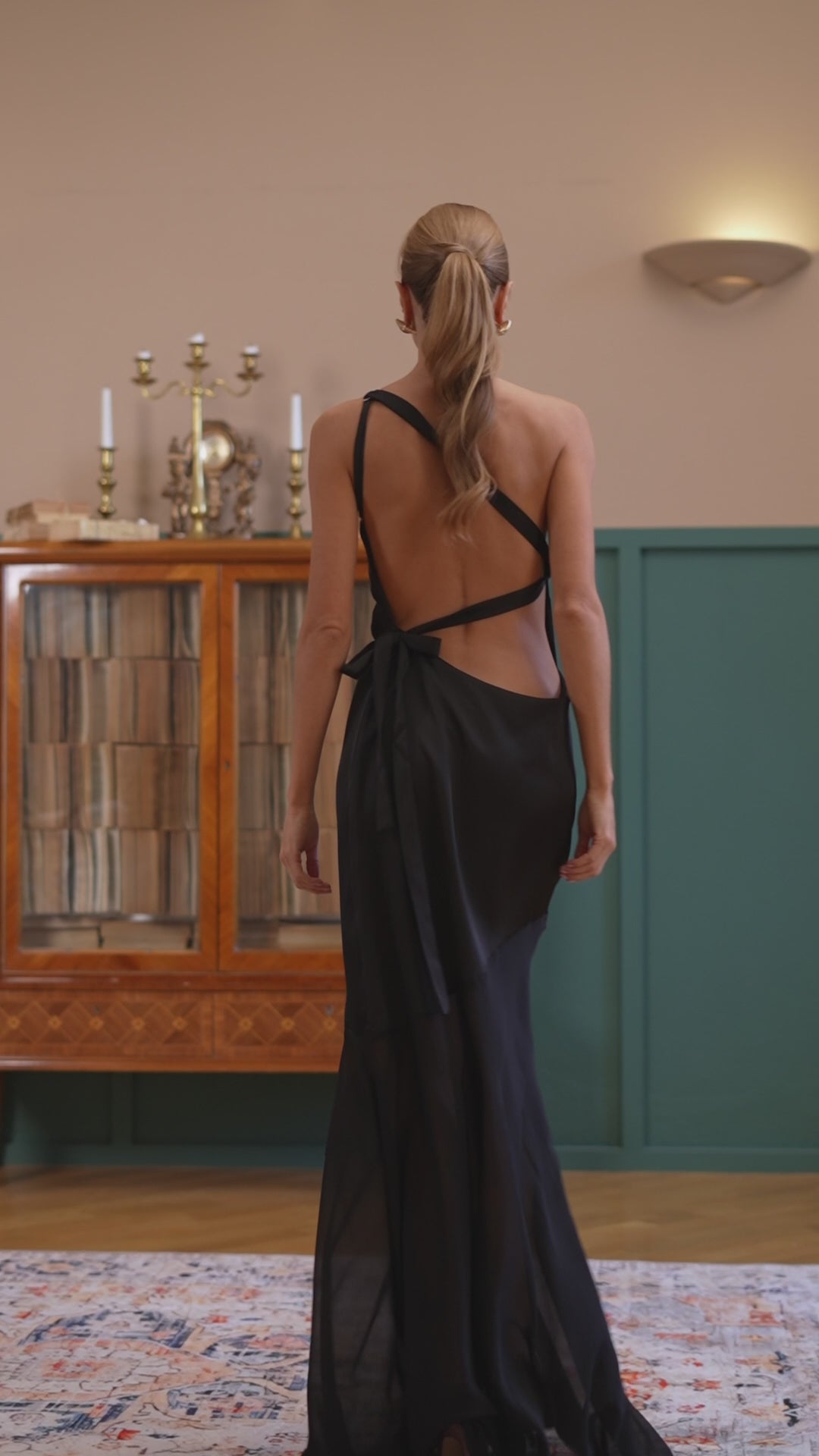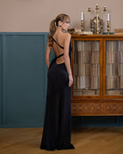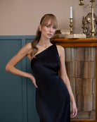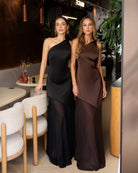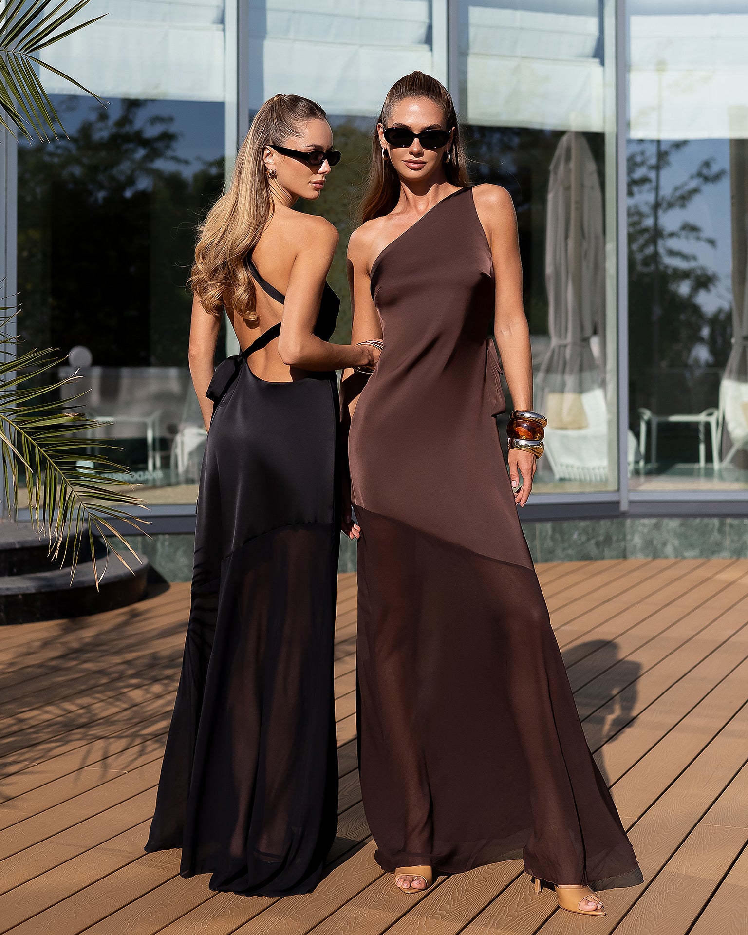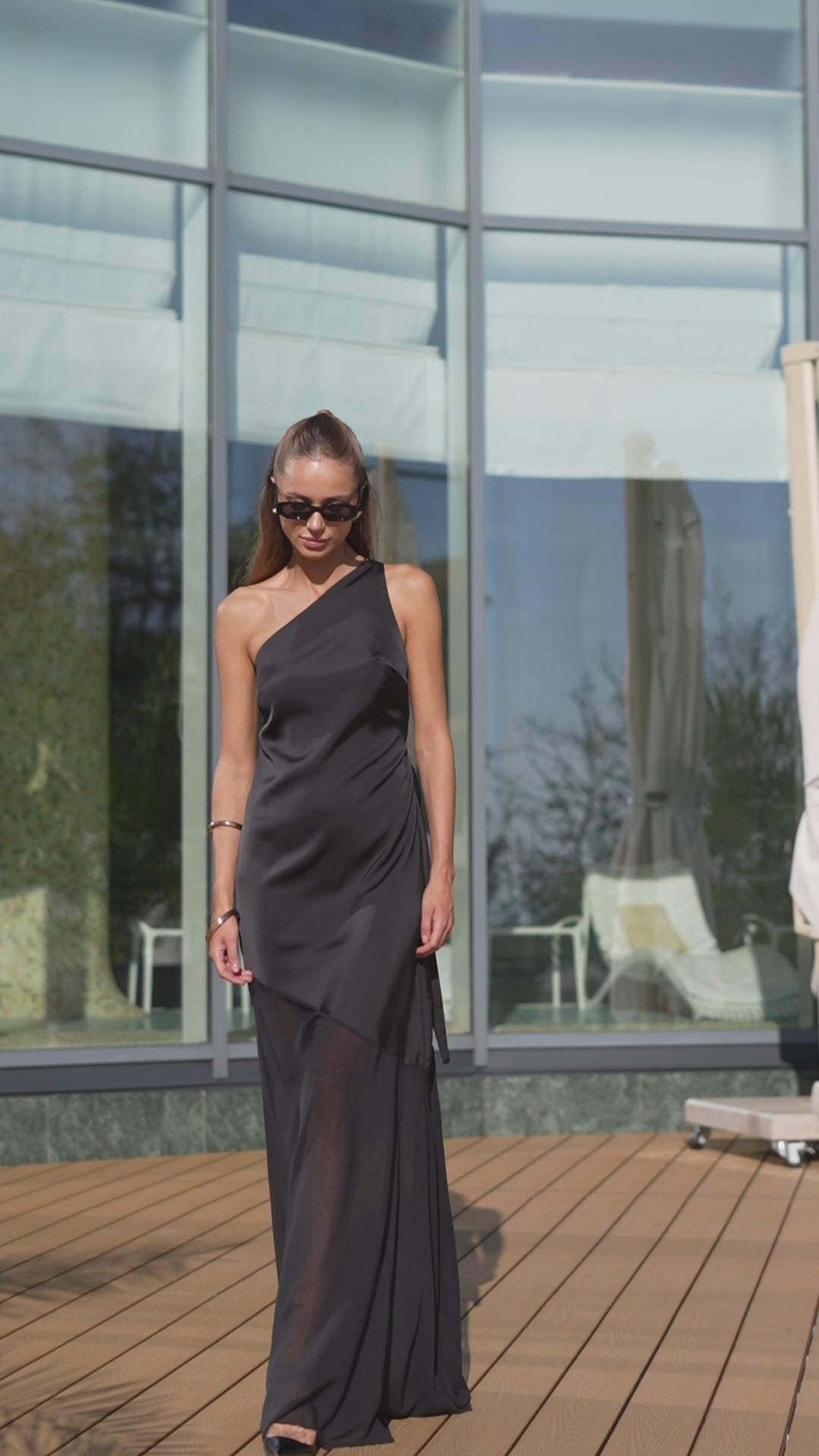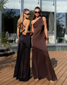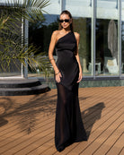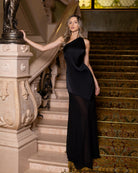 Liora Black Satin One-Shoulder Backless Maxi Dress