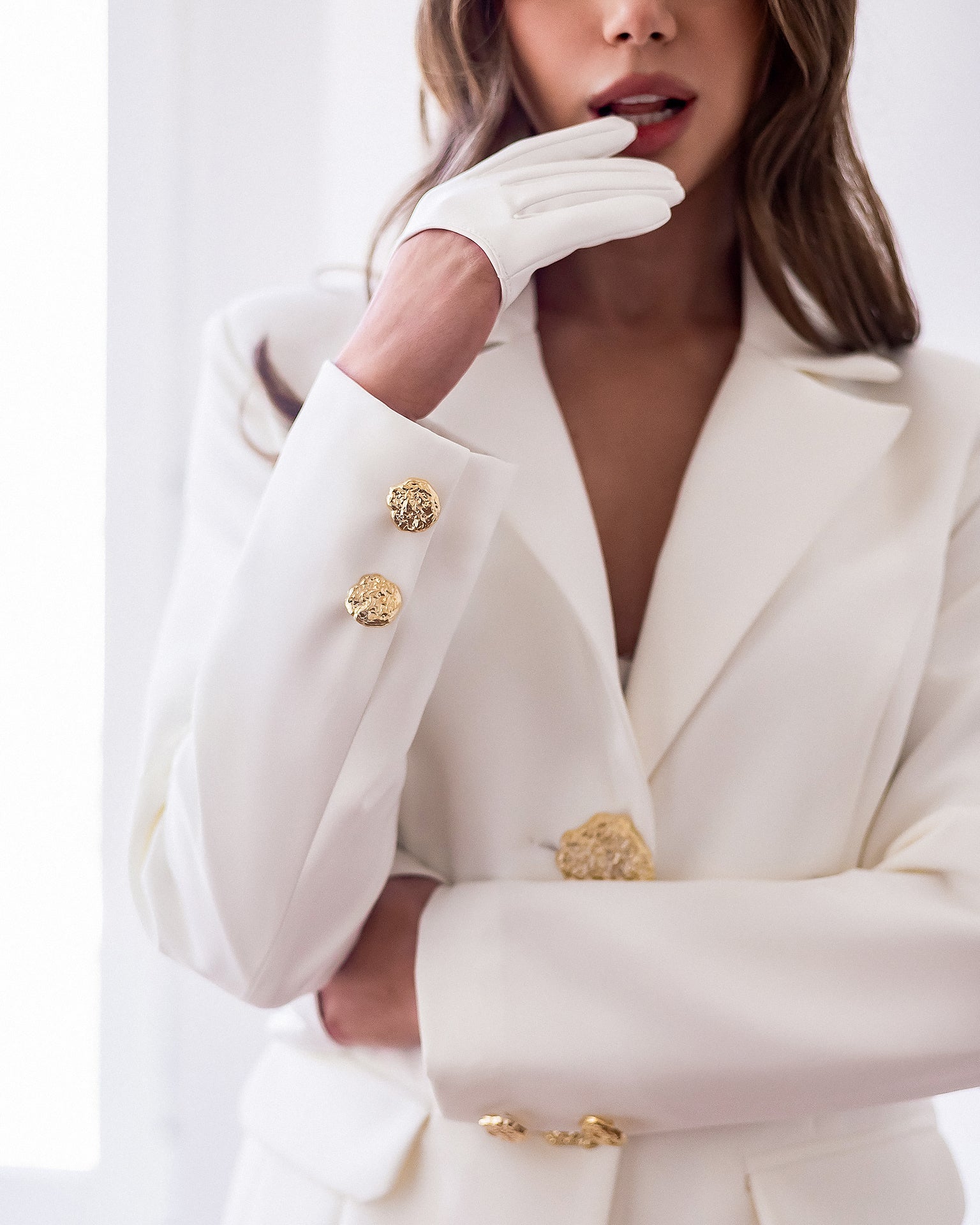 • Statement textured gold buttons