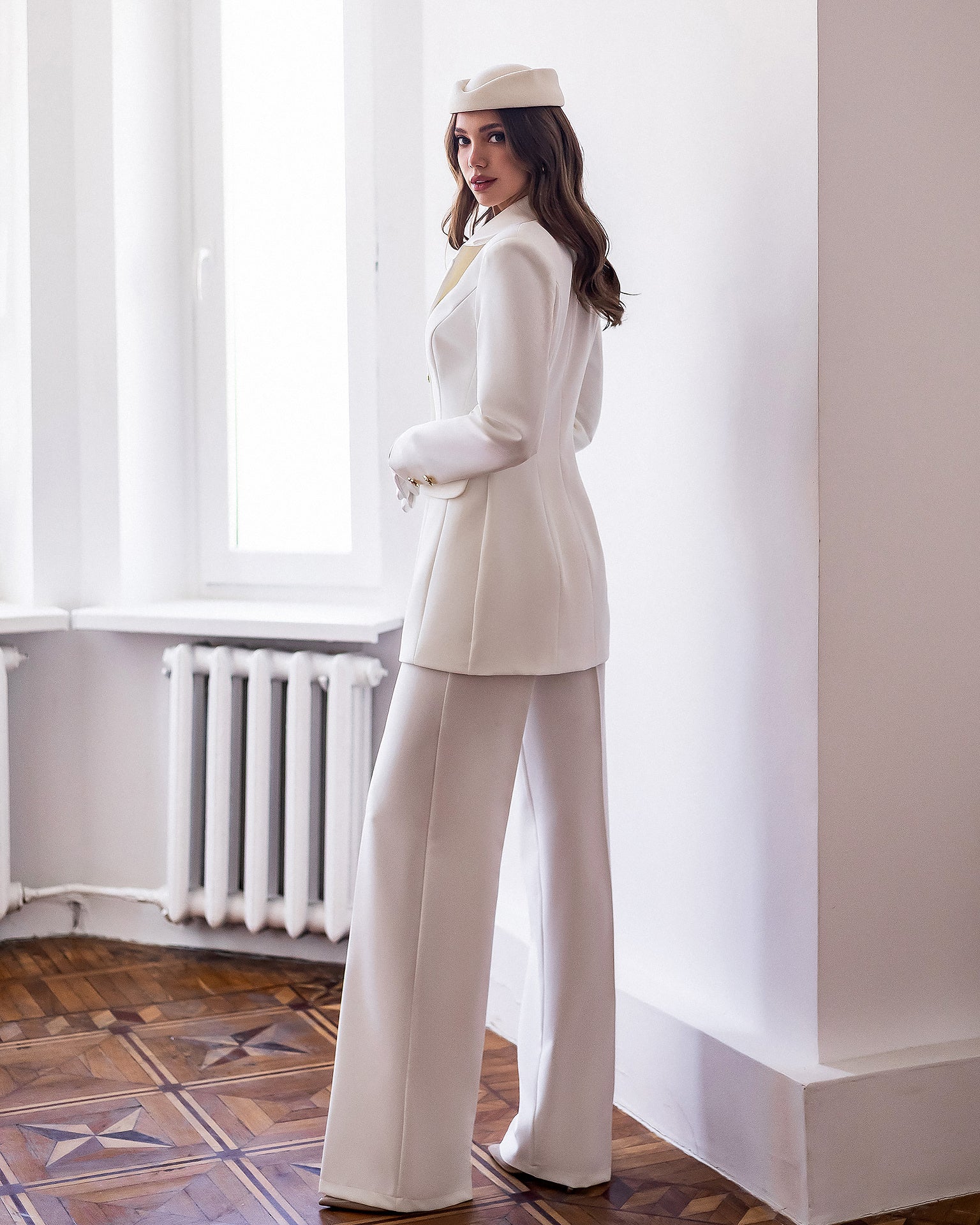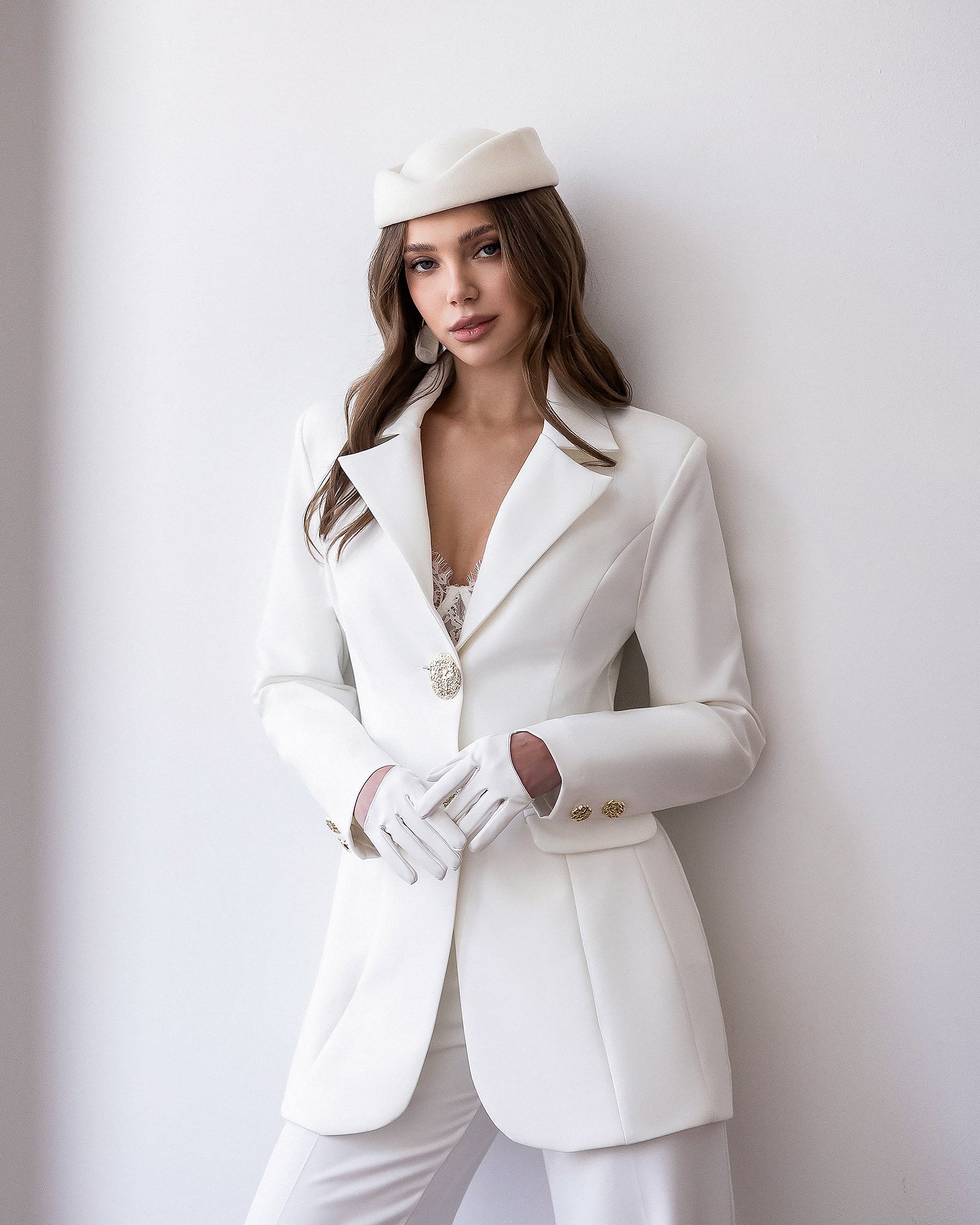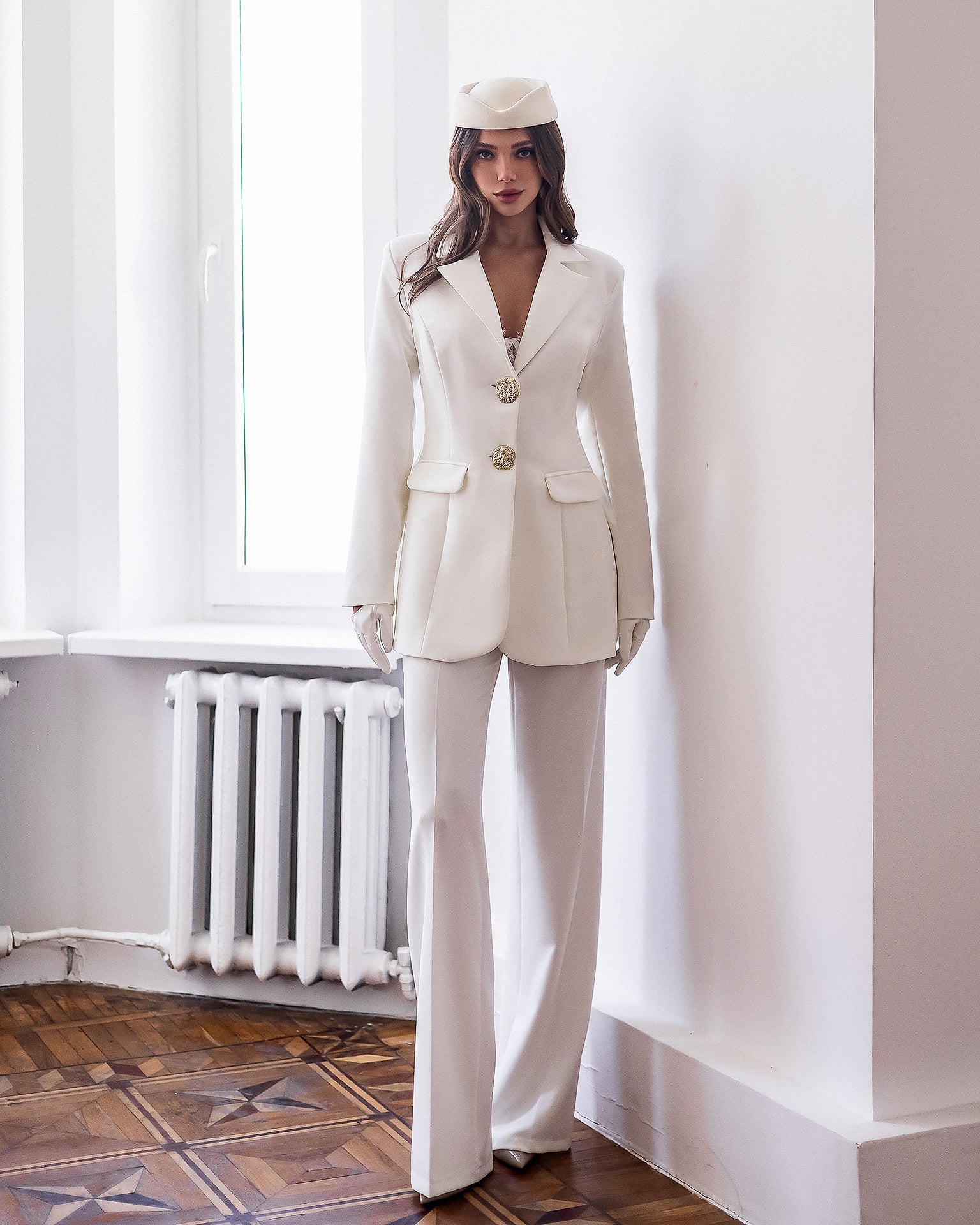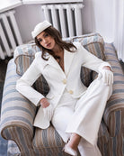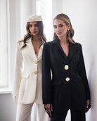 Paola White Single-Breasted Gold-Button Suit 2-Piece