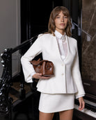 Serena White Tweed Peplum Blazer & Mini Skirt Suit 2-Piece