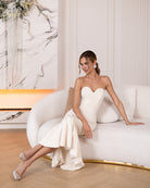 Bella Beige Strapless Ruffled-Hem Mermaid Midi Dress