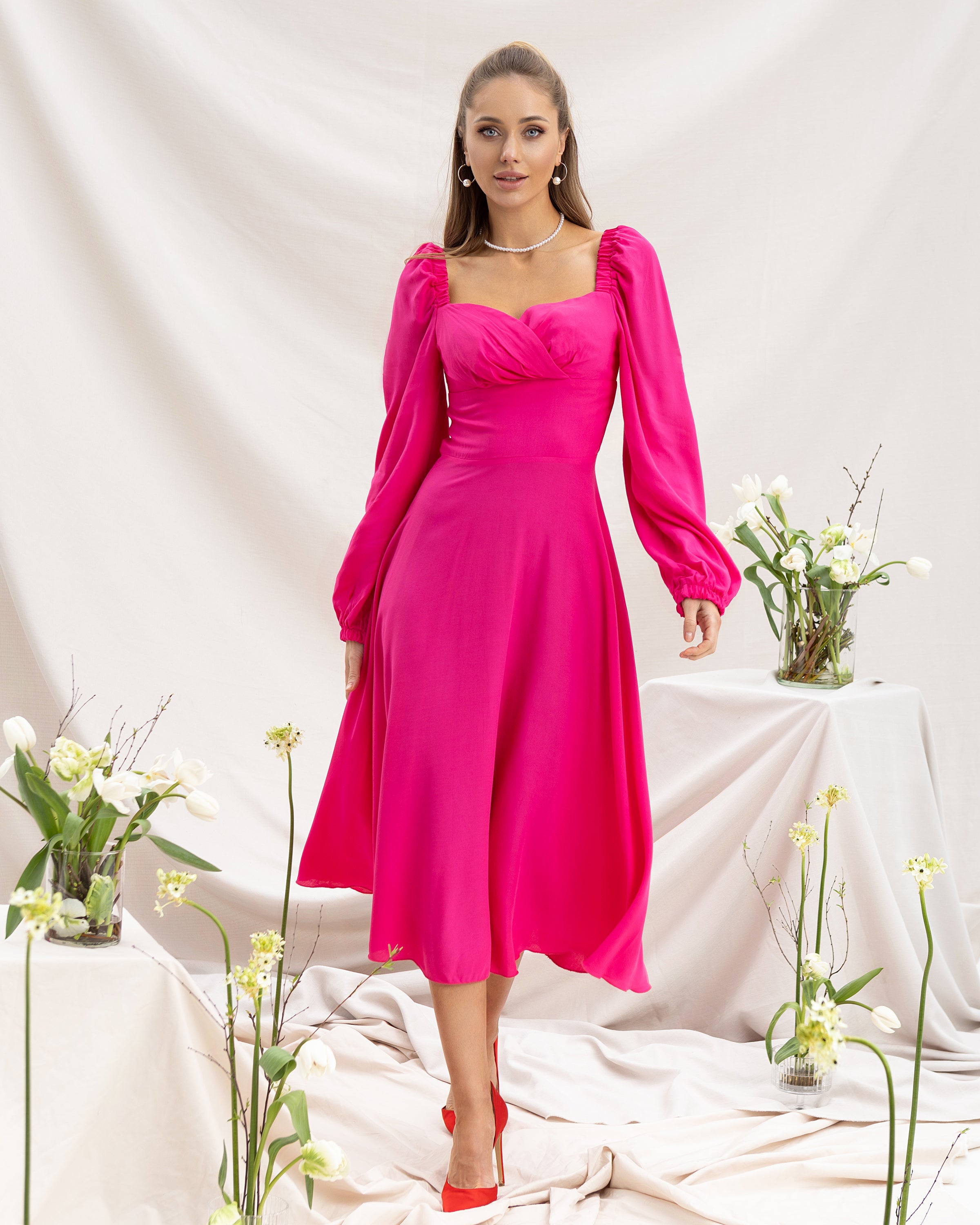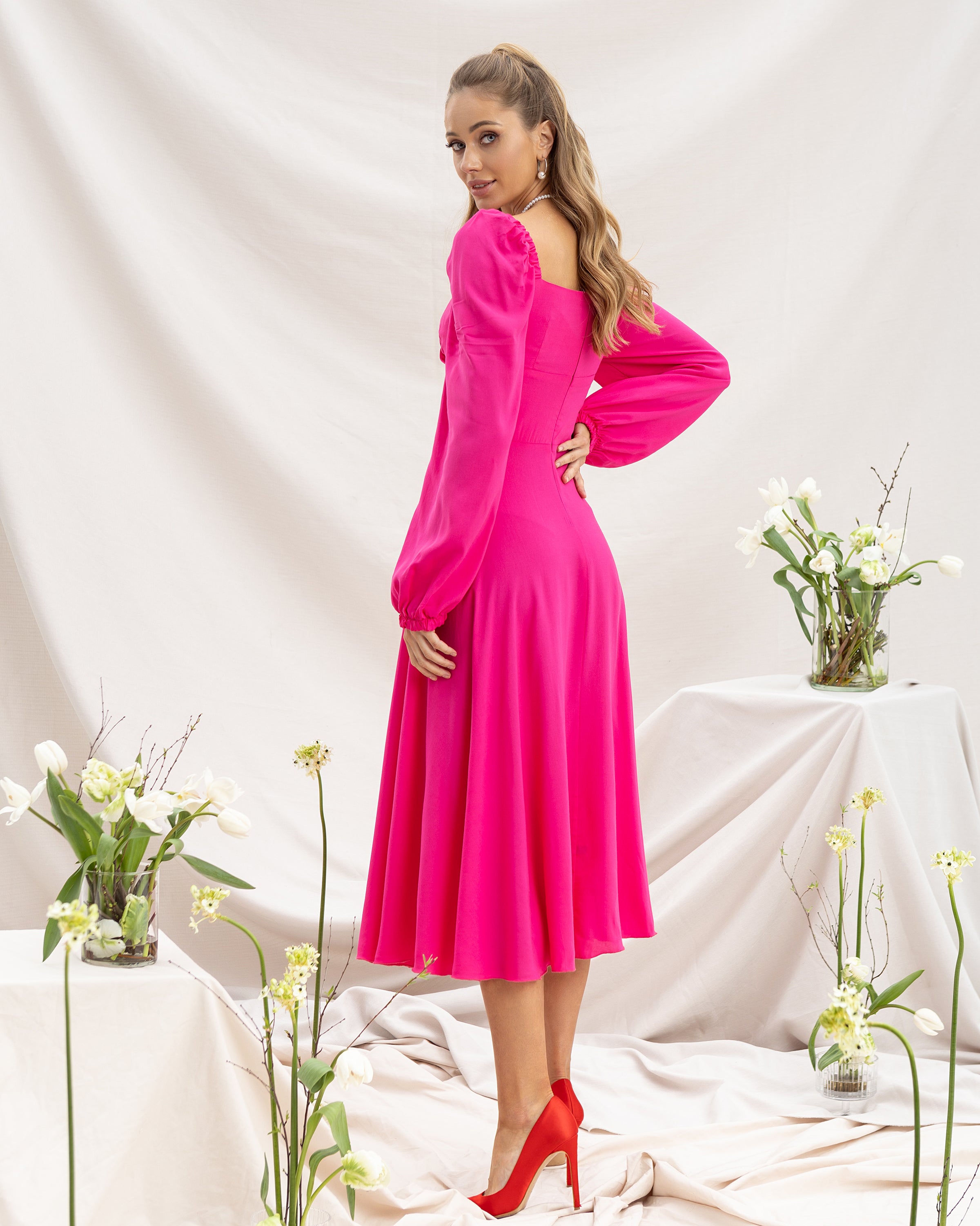 Crimson Sweetheart Puff Sleeve Midi Dress