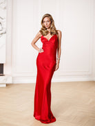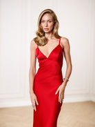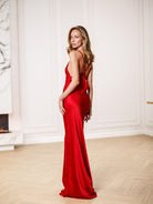 Liora Red Satin Open-Back Slip Maxi Dress