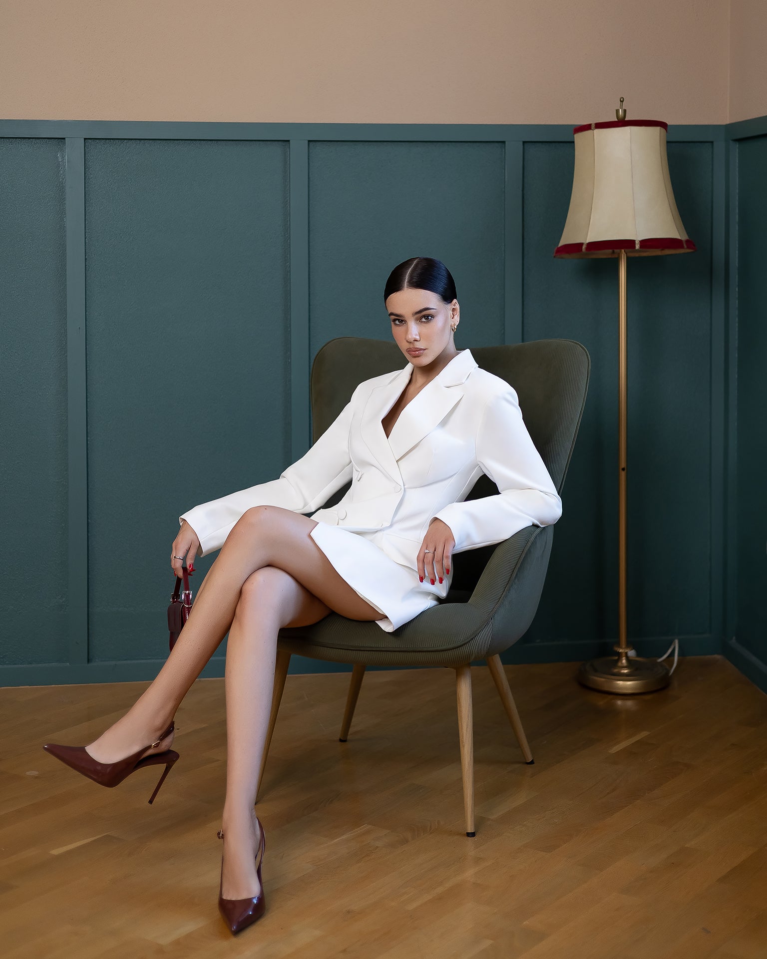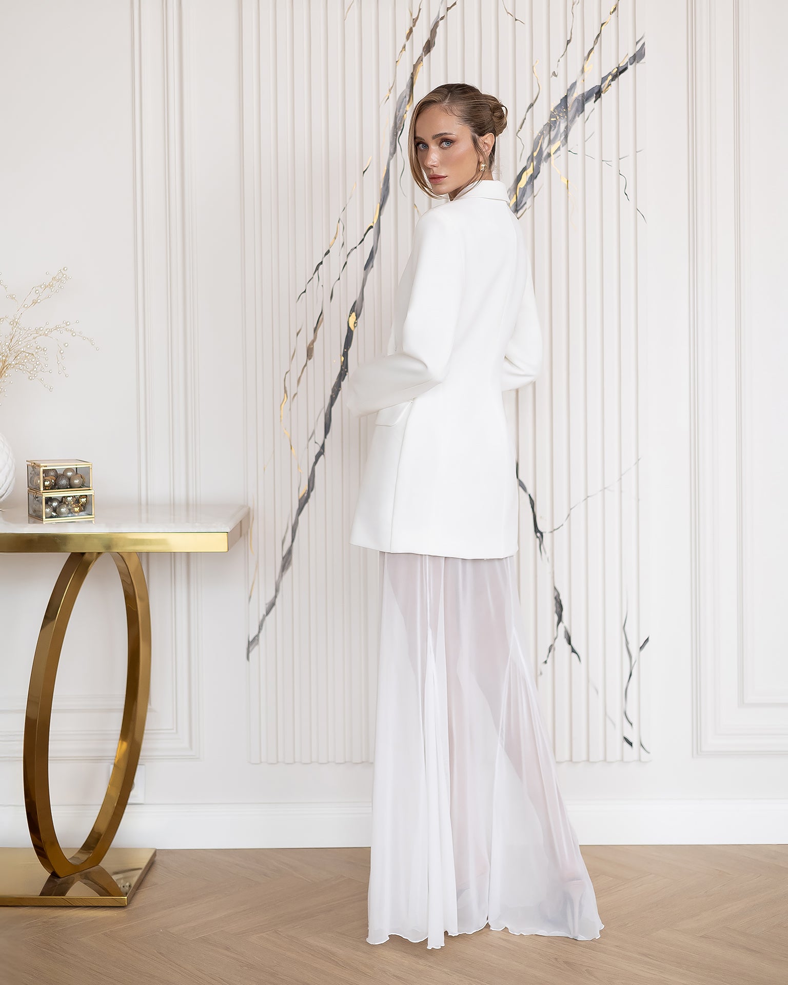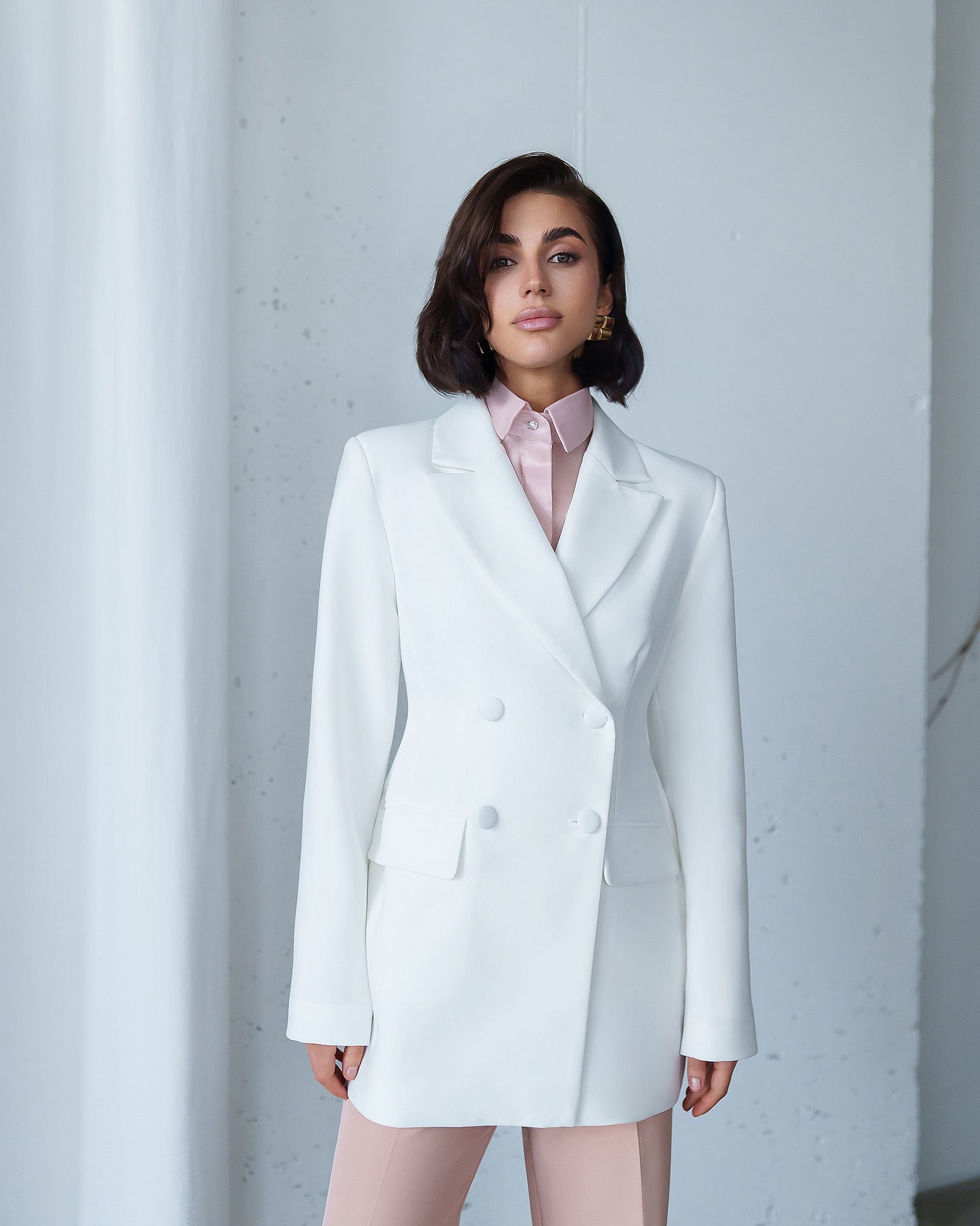• Long structured sleeves
