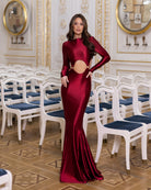 Stella Bordeaux Long-Sleeve Cut-Out Maxi Dress