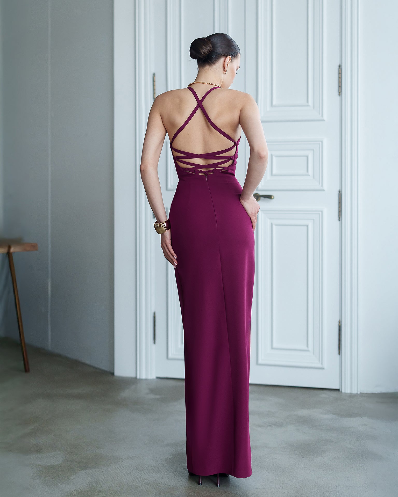 Bella Bordeaux Sweetheart High-Slit Maxi Dress