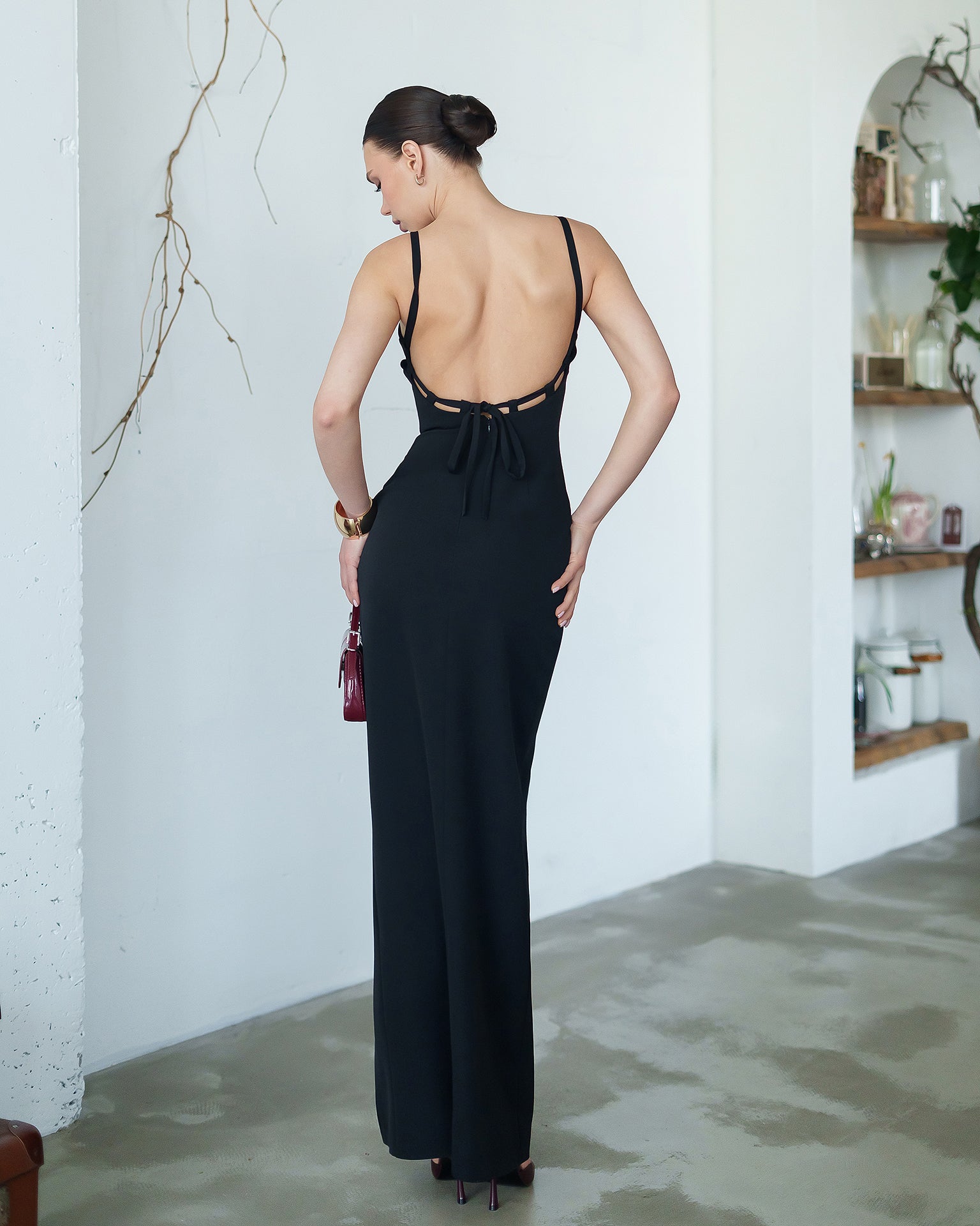 Black Cap Sleeve Corset Cut-Out Maxi Dress